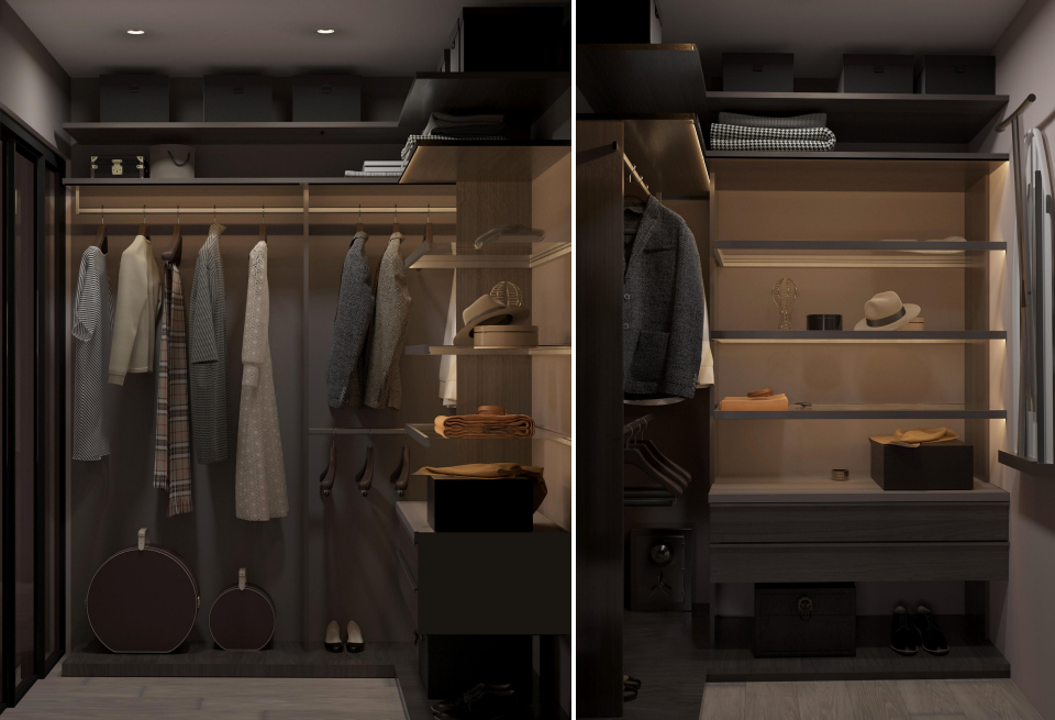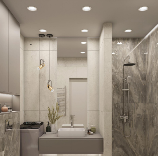 комбинацией различных материалов и оригинальным световым сценарием