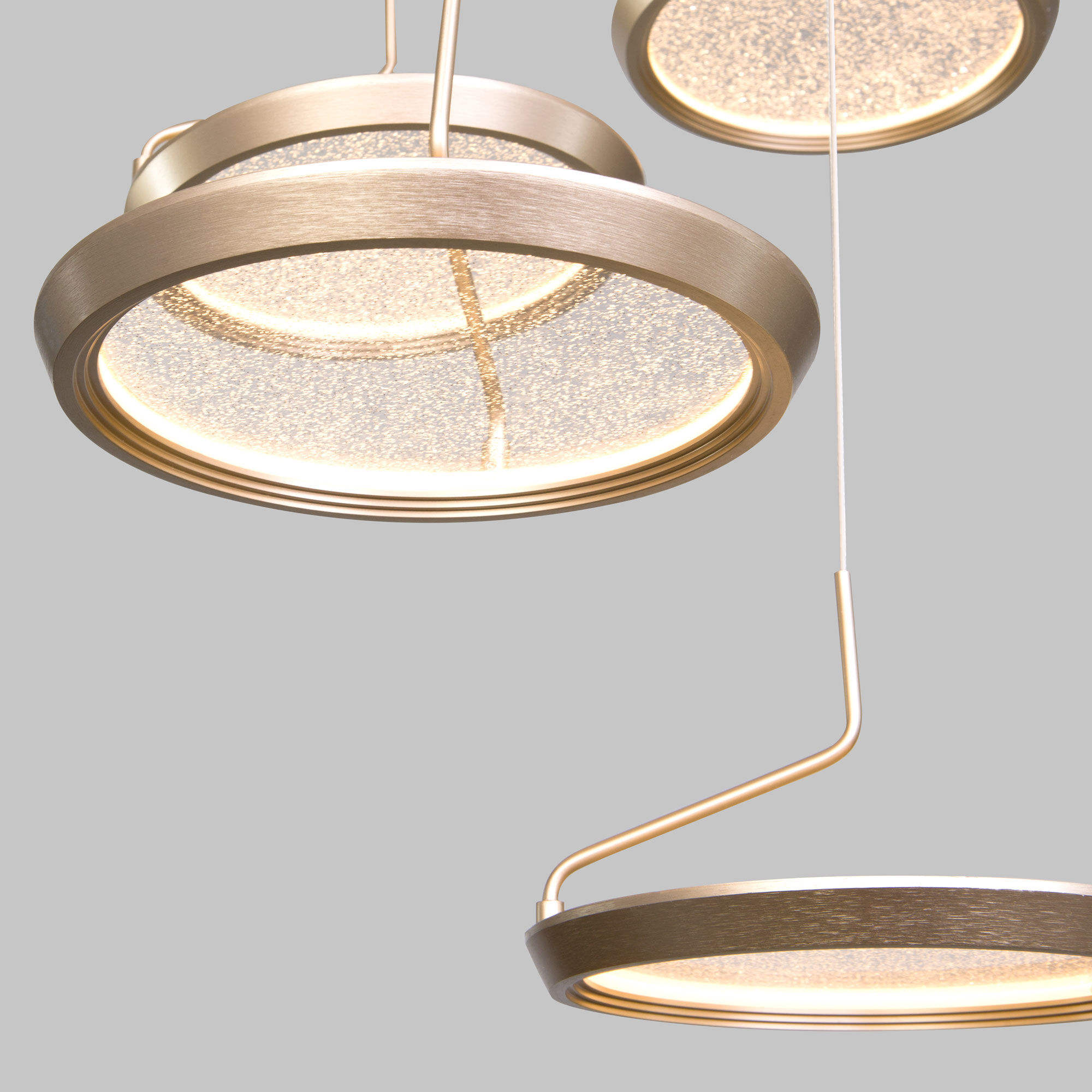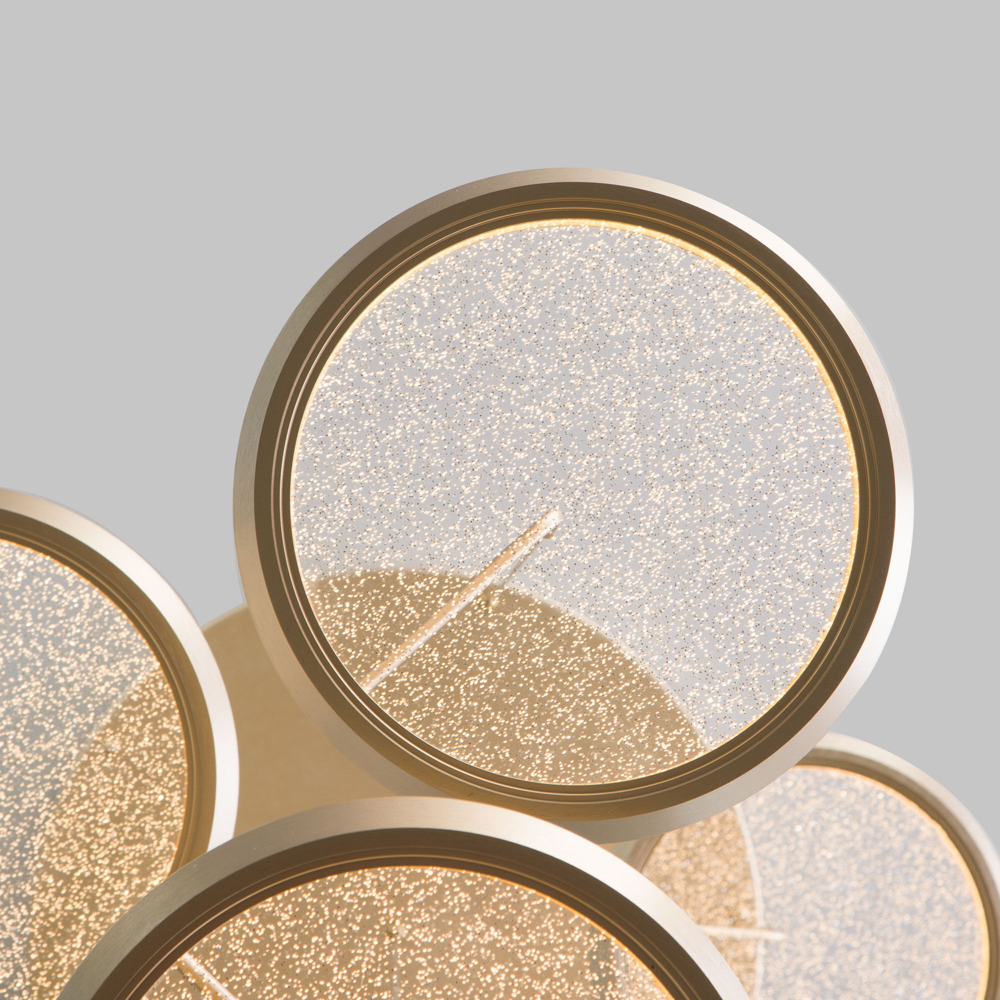 Дизайн коллекции, вдохновленный концепцией тихая роскошь, приносит в интерьер ощущение гармонии и завершенности, а лаконичное оформление становится частью окружения. В уникальных плафонах скрыта целая вселенная: сверкающее напыление на рассеивателях создает иллюзию галактики из звездных скоплений. Золотая фаска, обрамляющая плафон, играет роль декоративного дополнения моделей.