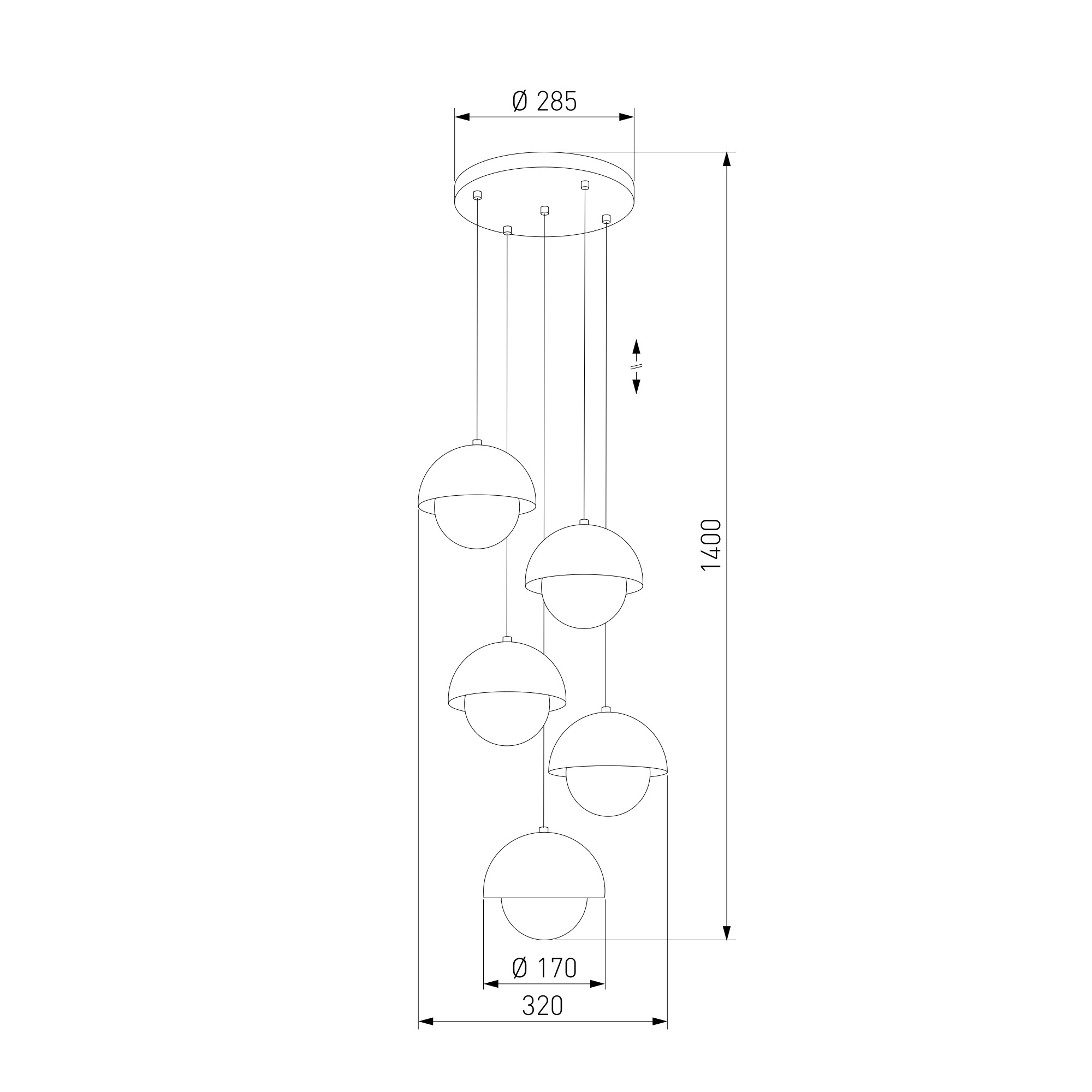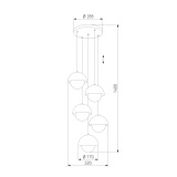 Коллекция включает в себя подвесные светильники на четыре и пять ламп, а также два светильника на один плафон с диаметрами 170 и 270 мм.