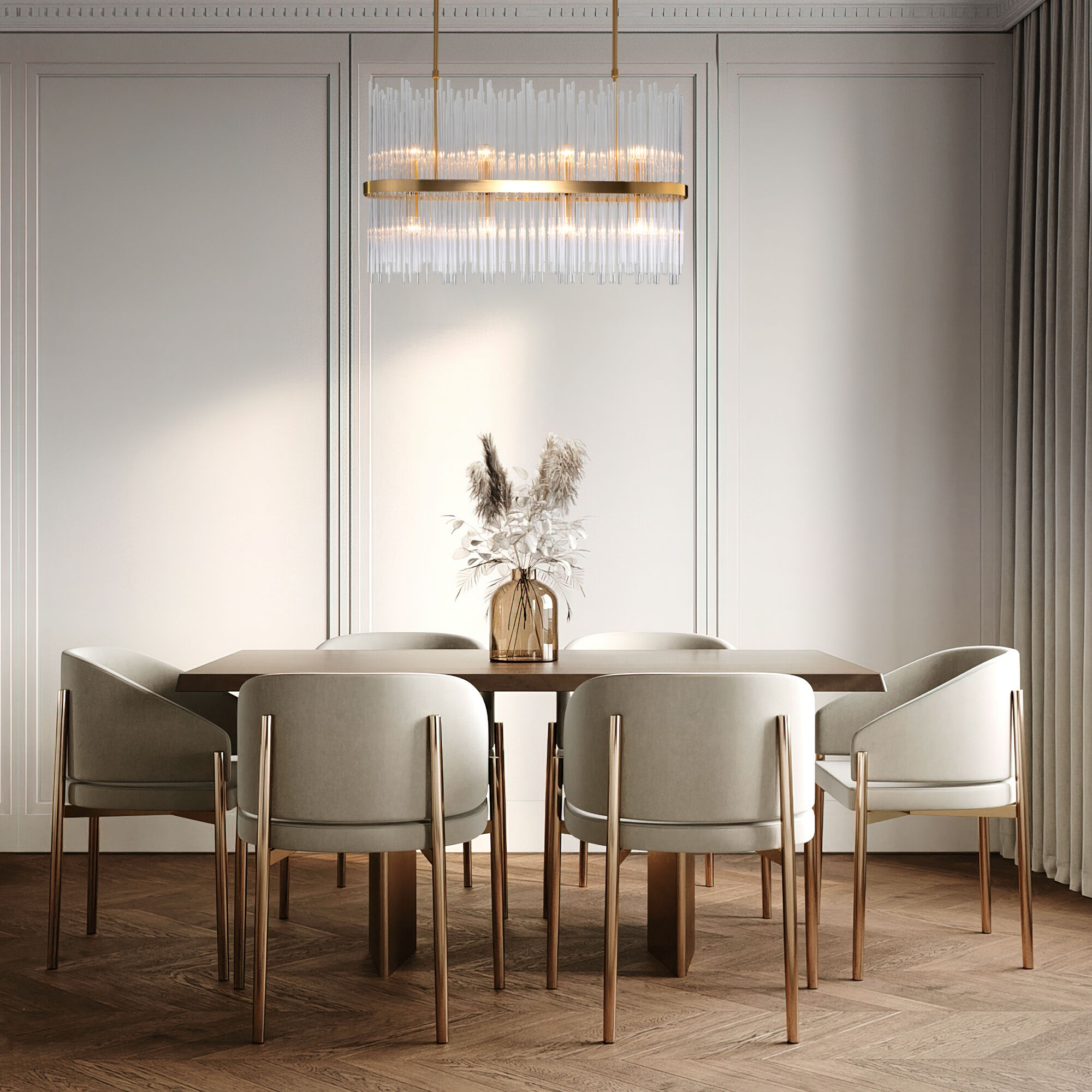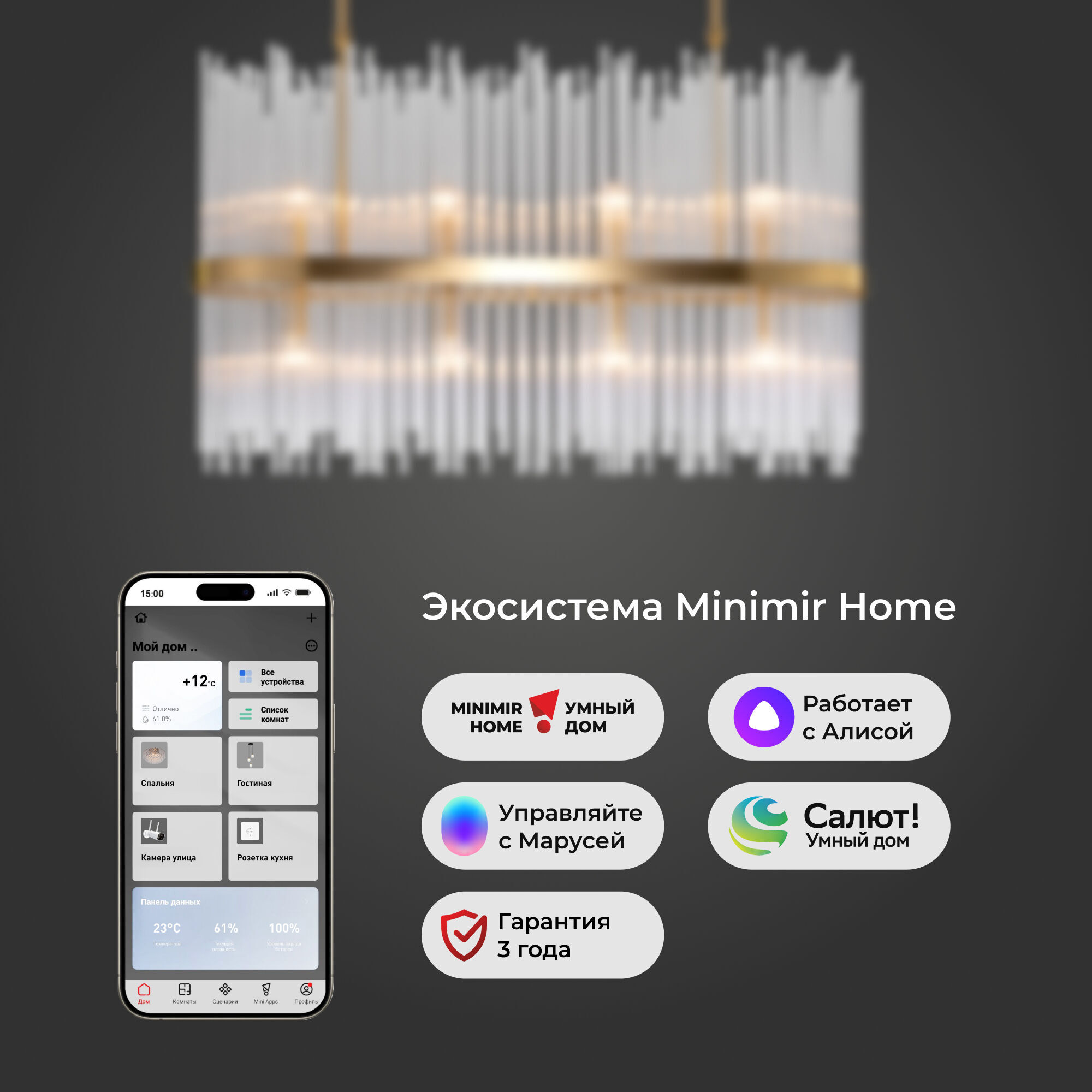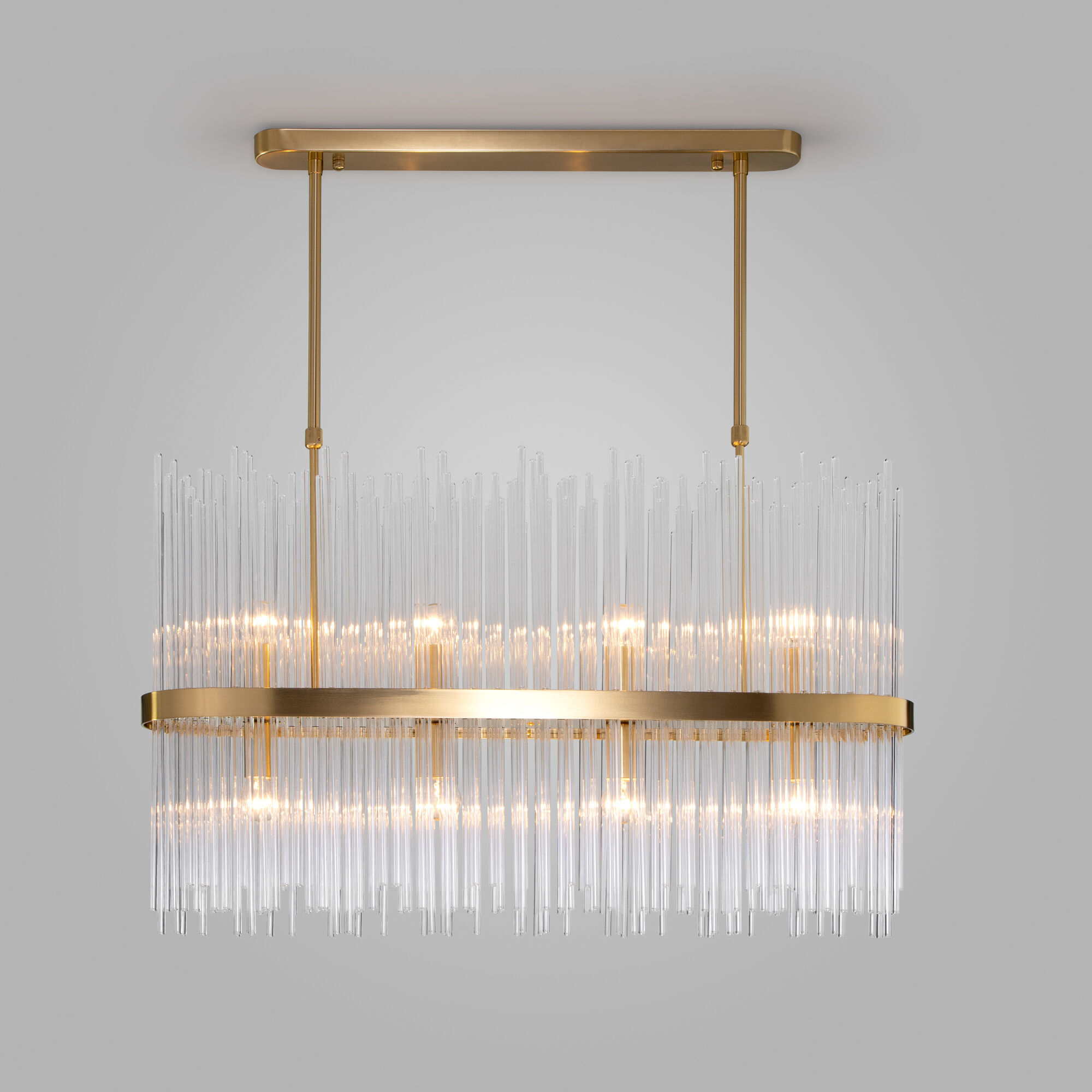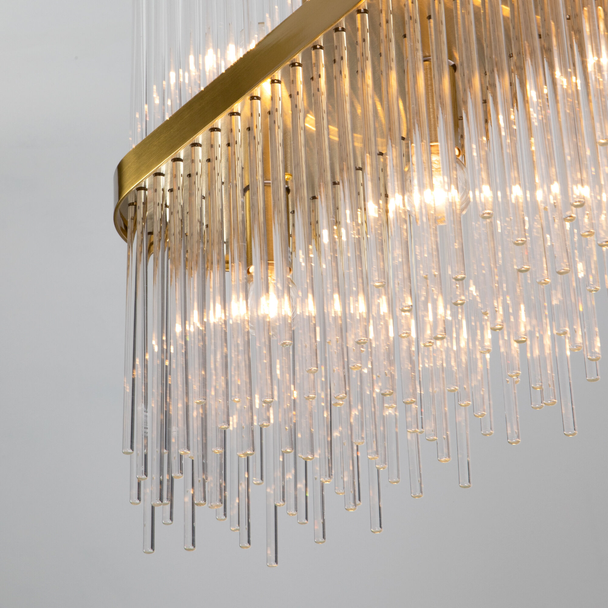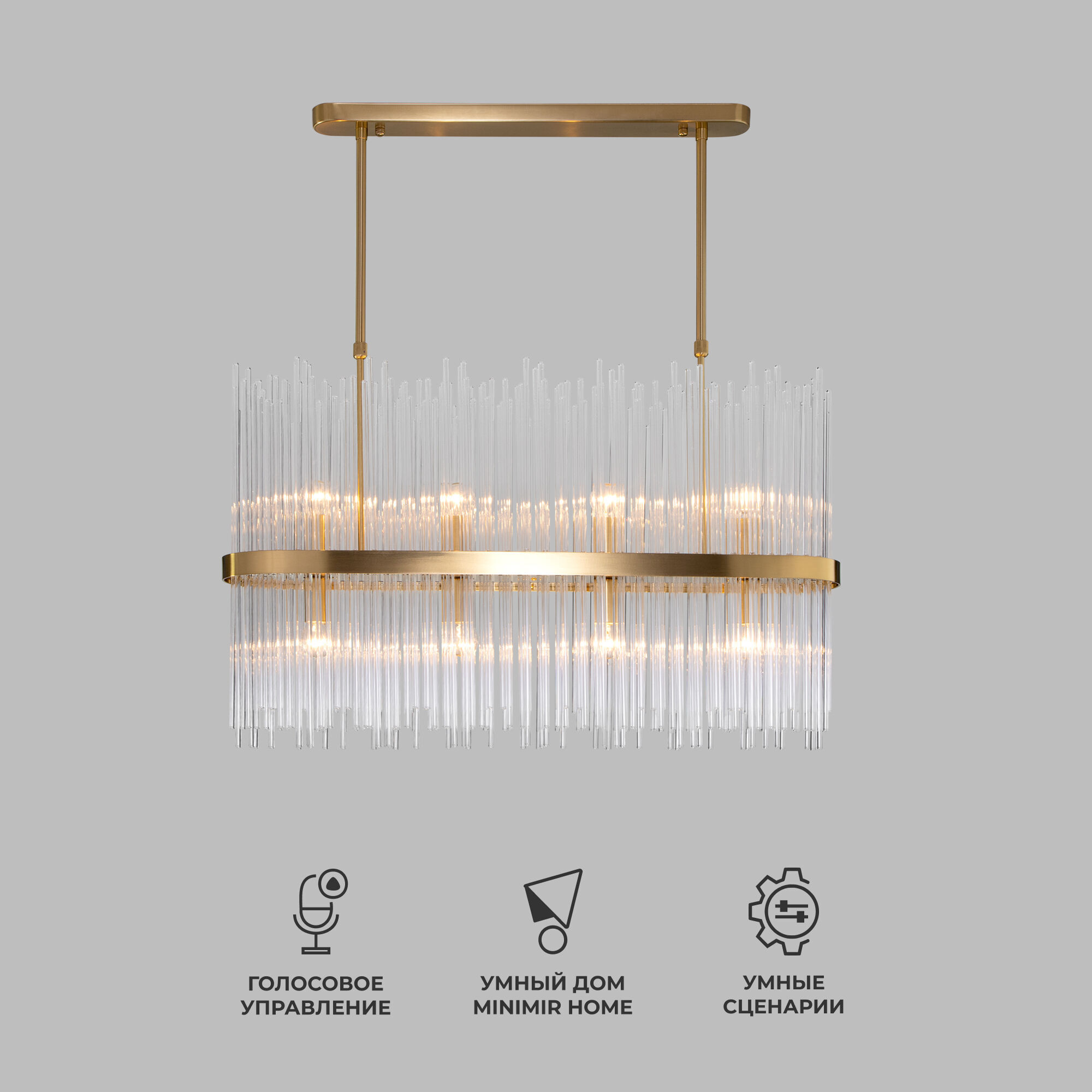 Декоративные стеклянные трубочки и сменные лампы с цоколем E14 переливаются на свету искристыми завораживающими бликами. В производстве подвесной люстры использовали особое стекло с эффектной огранкой и высококачественный металл с надежным защитным покрытием.