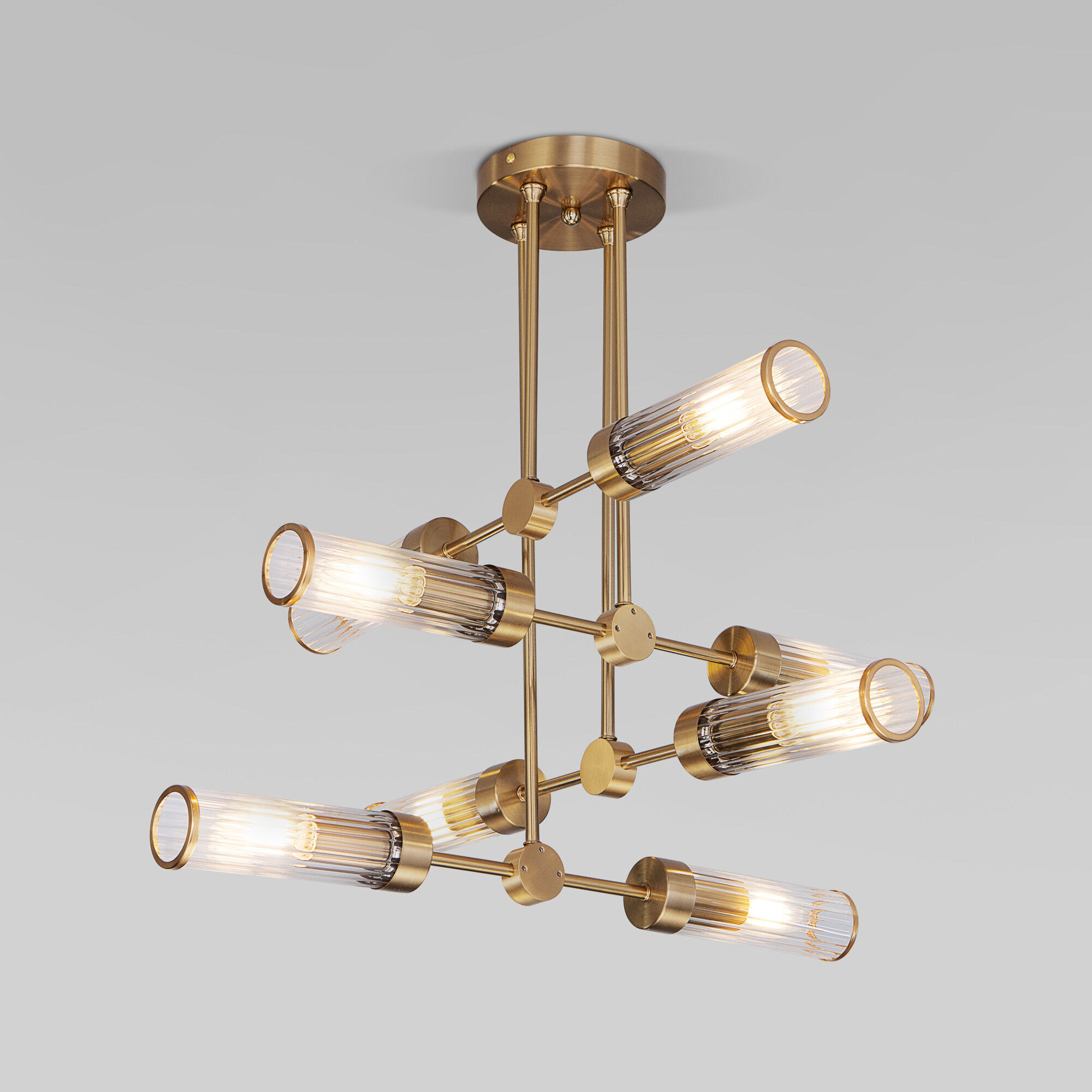 Коллекция включает в себя: потолочные люстры на четыре и шесть плафонов, потолочную линейную люстру на 6 плафонов и настенный светильник.