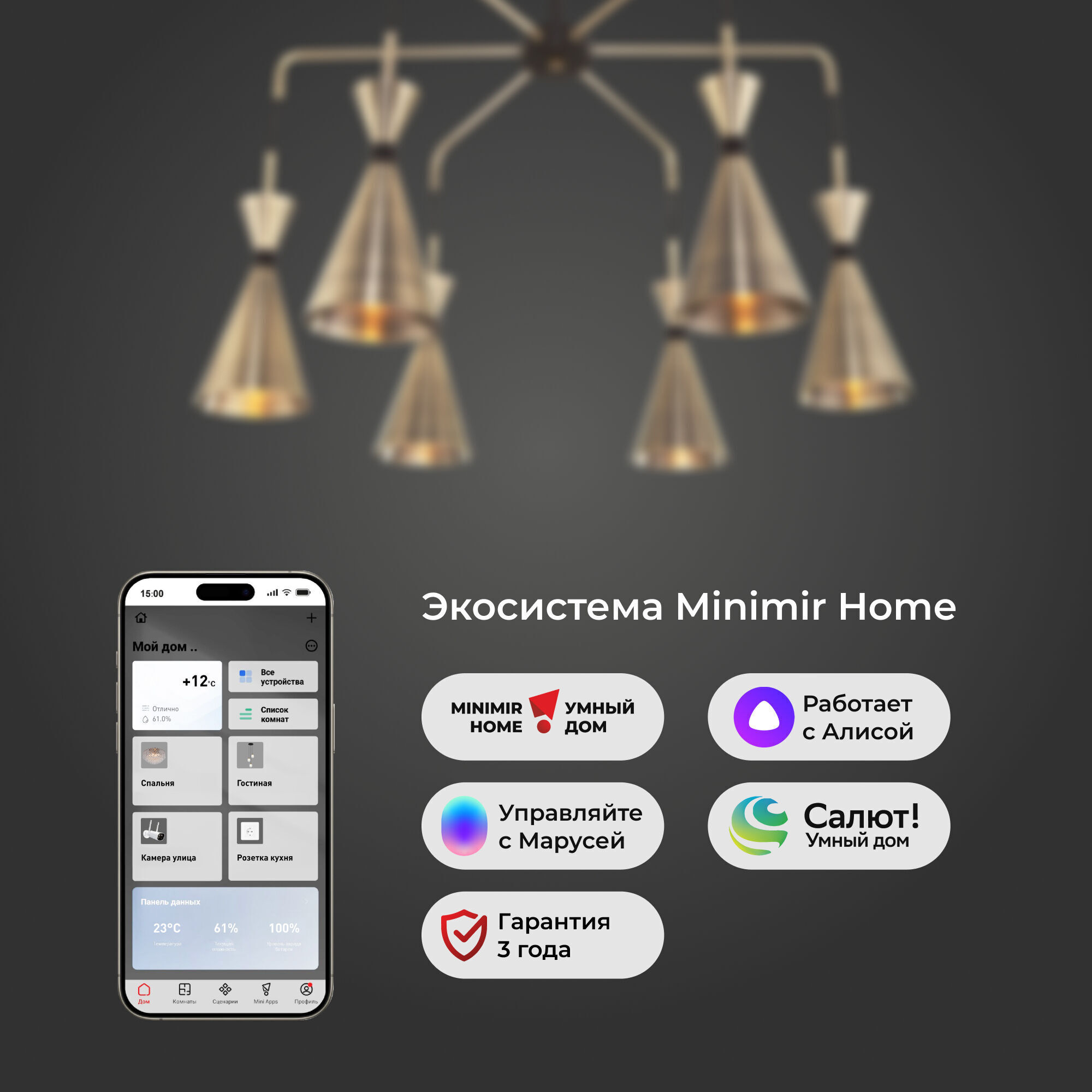 Люстра украсит потолок вашей комнаты и создаст полноценное освещение на площади 15м². В люстре рекомендуется использовать сменные лампы накаливания с цоколем Е14 с максимальной мощностью 60 Вт. В производстве люстры использовали высококачественный металл с надежным защитным покрытием.
