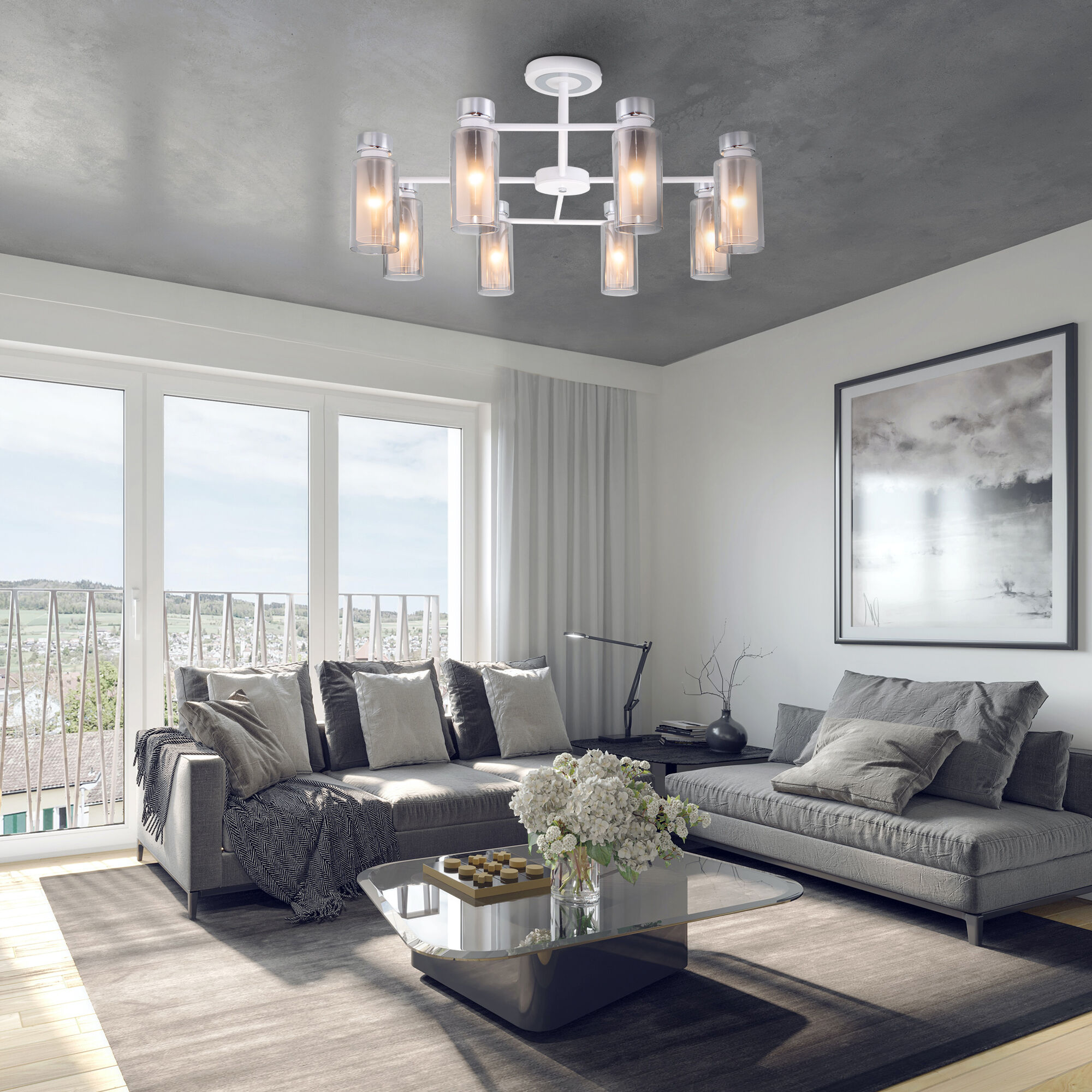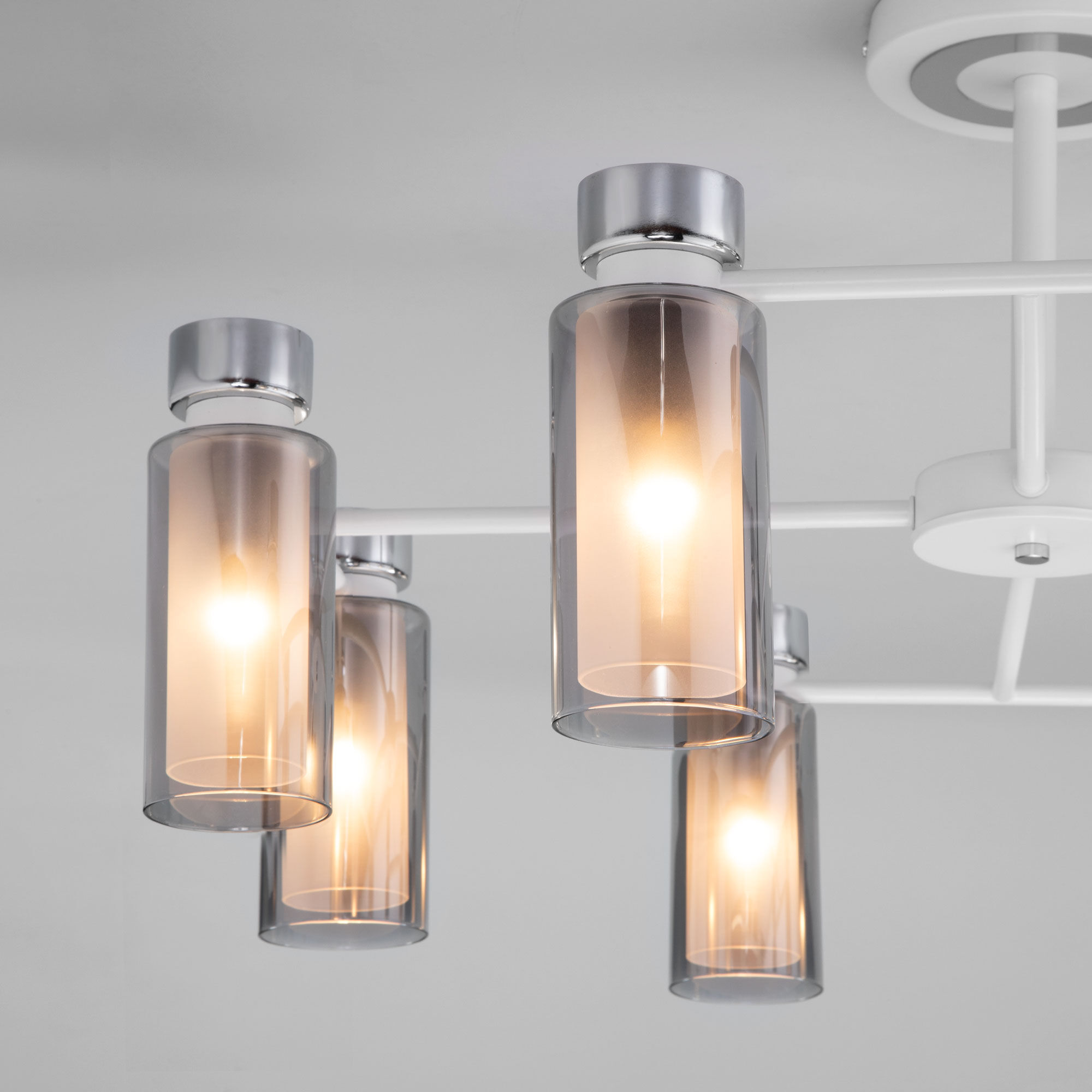 Потолочная люстра со стеклянными плафонами 70115/8 белый предназначена для создания основного освещения в современных и классических интерьерах, подходит для различных типов помещений и рассчитана на площадь освещения 24 м².