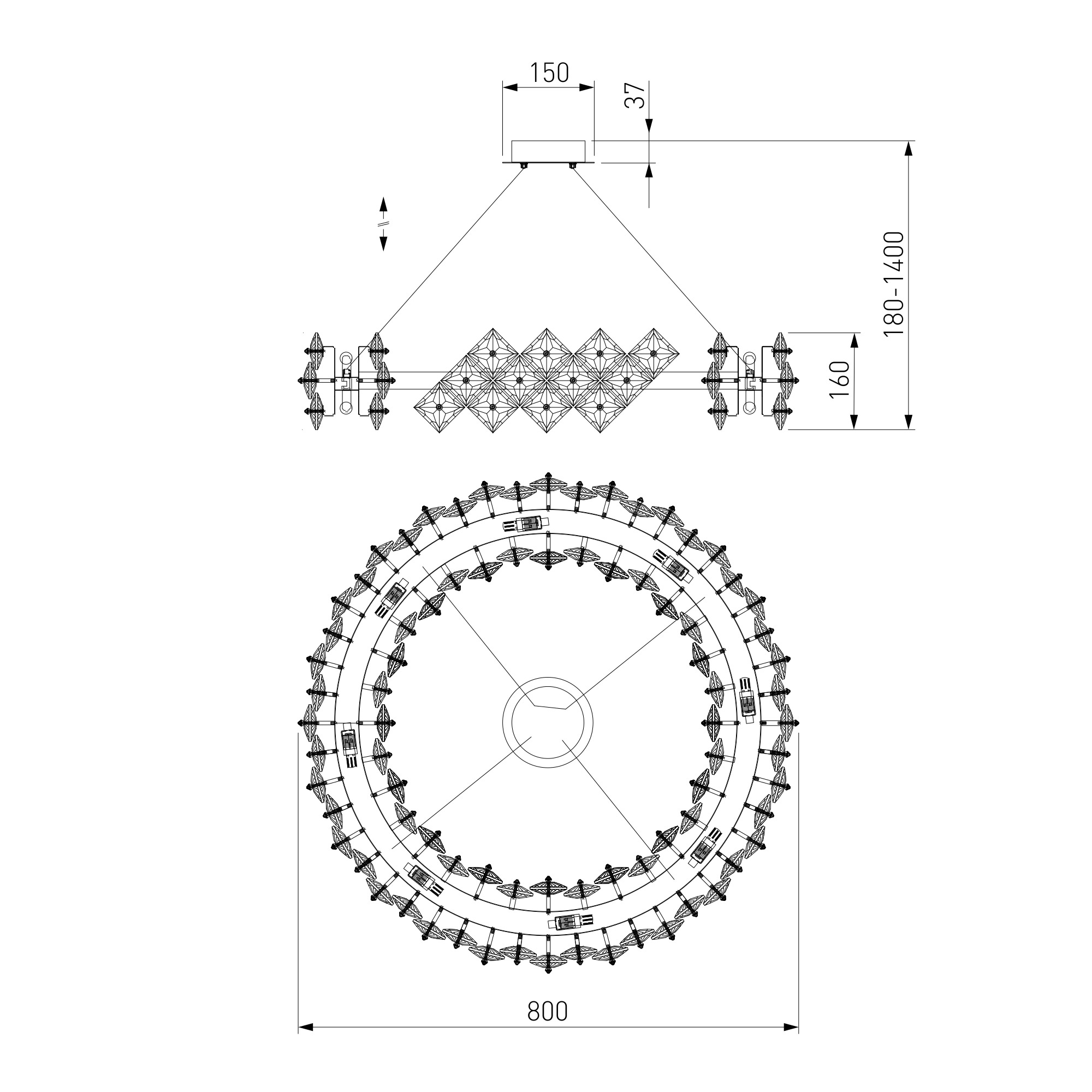Rubis — элегантный светильник, наполняющий пространство роскошью. Изысканная арматура золотого цвета усеяна хрусталем Strotskis, который привносит атмосферу торжества и изысканности. Сочетание дымчатого и прозрачного хрусталя строгой геометрической формы добавляет акценты в интерьер. Лучи света, попадая на хрусталики, создают оригинальную игру света и бликов.