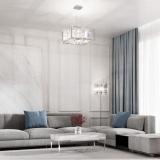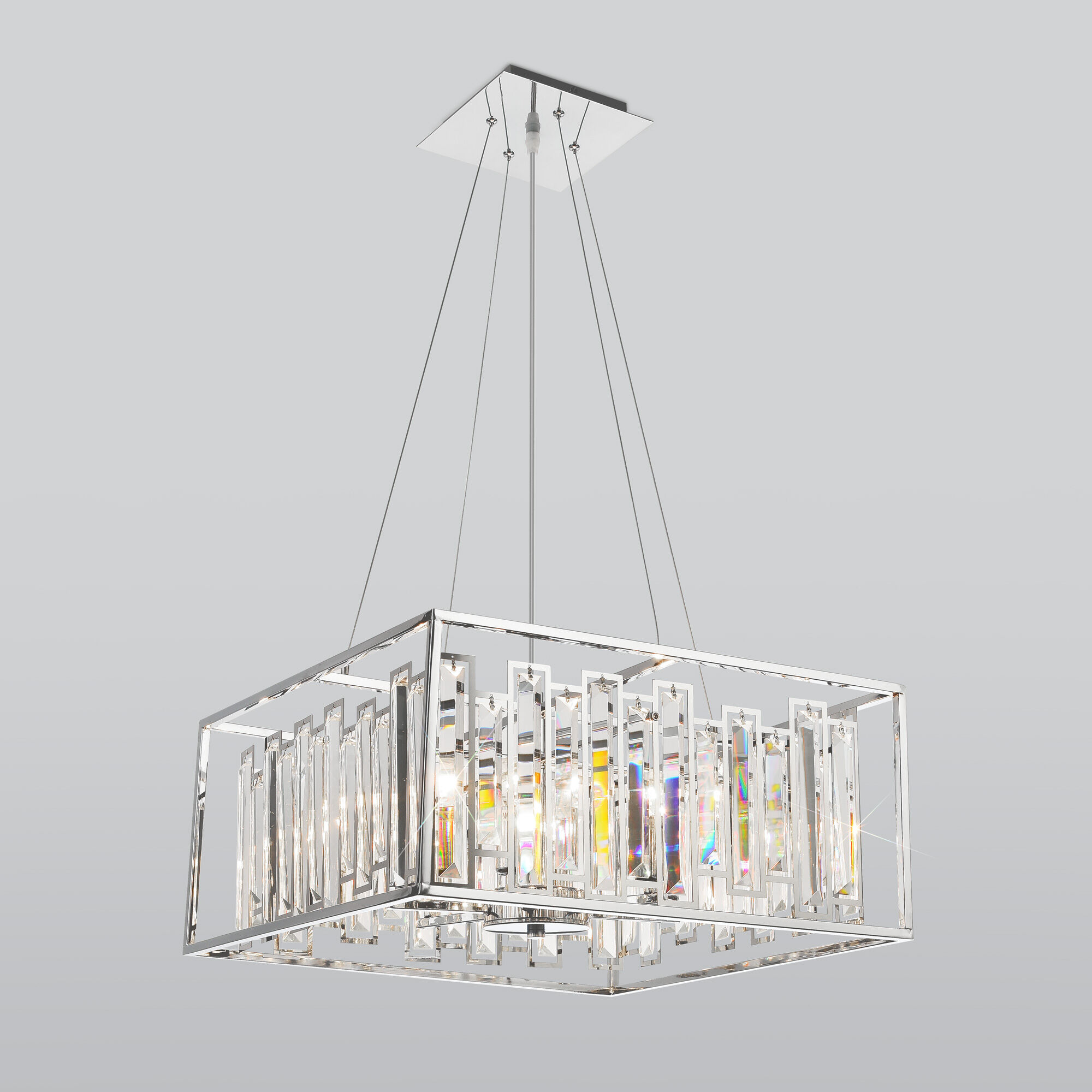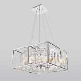 Выразительная люстра с хрусталем на 6 рожков в цвете хром преобразит потолочное пространство и создаст в вашем помещении полноценное освещение на площади 24 м кв. Декоративные хрустальные пластины, украшенные сменными лампами с цоколем E14 типа свеча переливаются на свету искристыми завораживающими бликами.