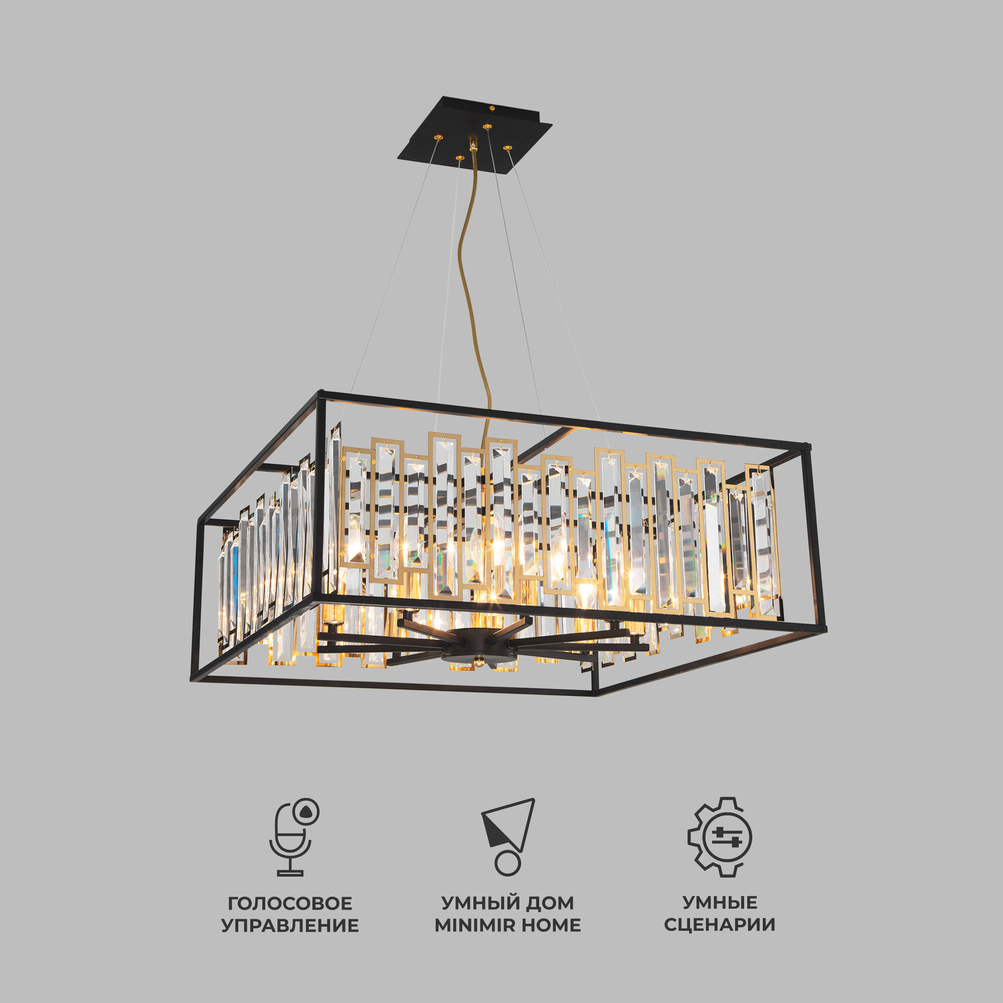 Декоративные хрустальные пластины, украшенные сменными лампами с цоколем E14 типа свеча переливаются на свету искристыми завораживающими бликами. В производстве подвесной люстры использовали хрусталь с эффектной огранкой и высококачественный металл с надежным защитным покрытием.