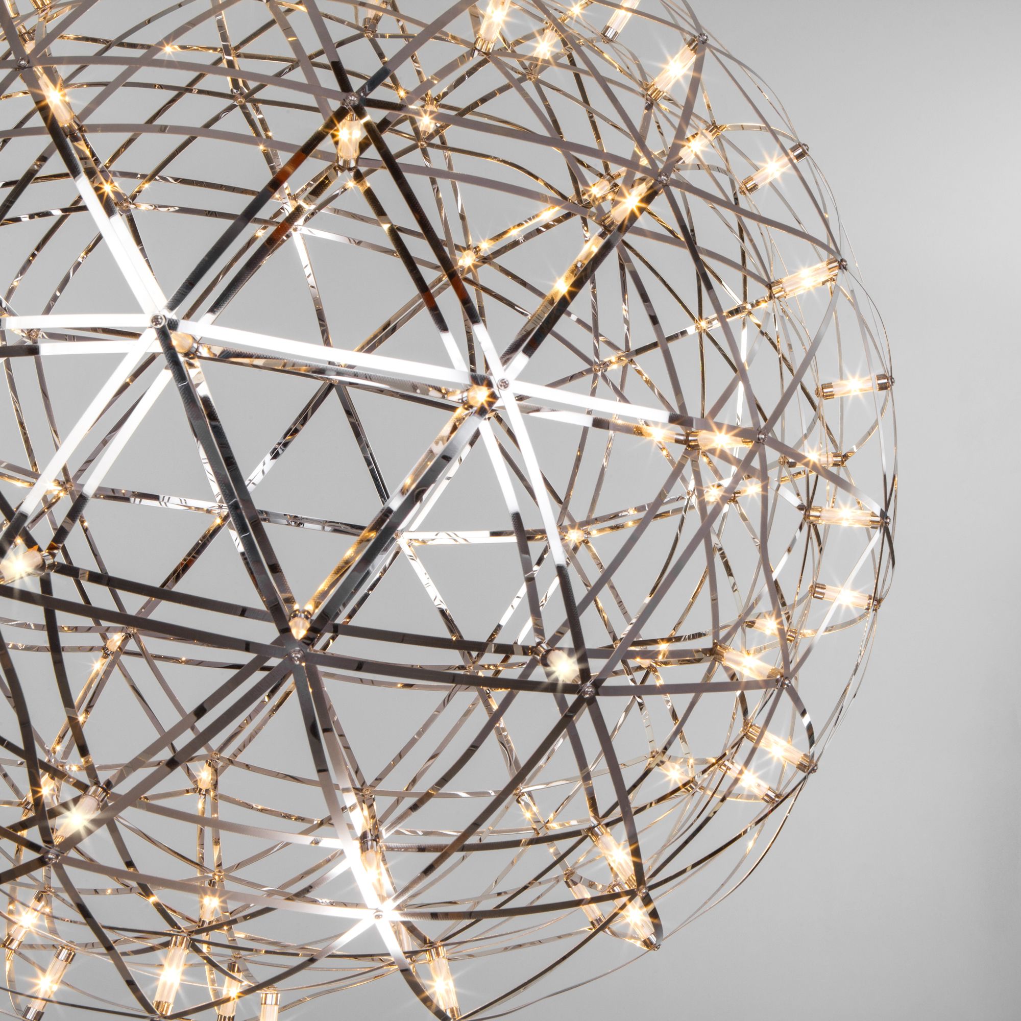 Светильник с металлическим шарообразным плафоном оснащен системой регулировки высоты подвеса, позволяющей размещать изделие на разных уровнях, уменьшая или увеличивая угол рассеивания светового потока. Данный светильник легко устанавливается на потолке при помощи монтажной планки.