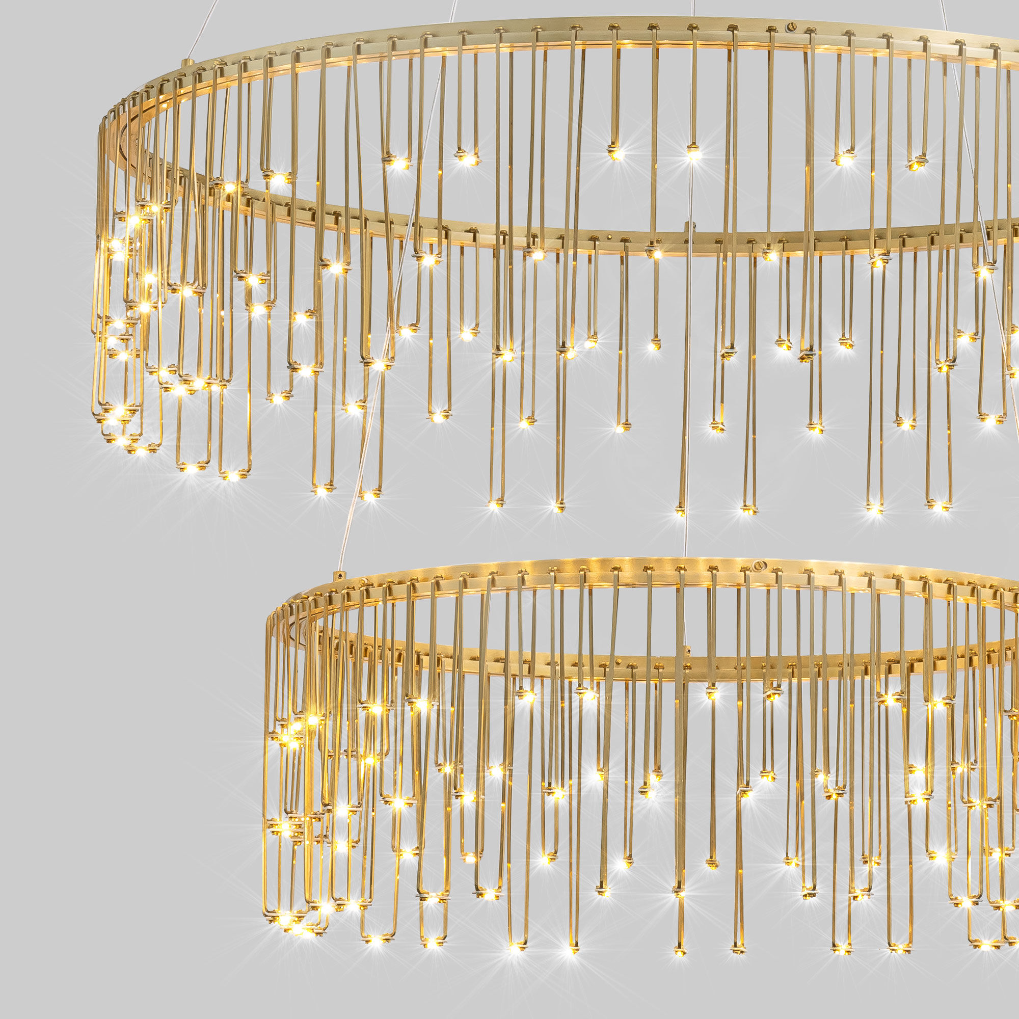 Firefly — изящный светильник в эксклюзивном дизайне. Каскадное расположение светодиодов создает имитацию звездного неба. Утонченная арматура латунного цвета в сочетании с переливающимися светодиодами добавляют легкости интерьеру. Коллекция включает в себя модели с одним и двумя кольцами.