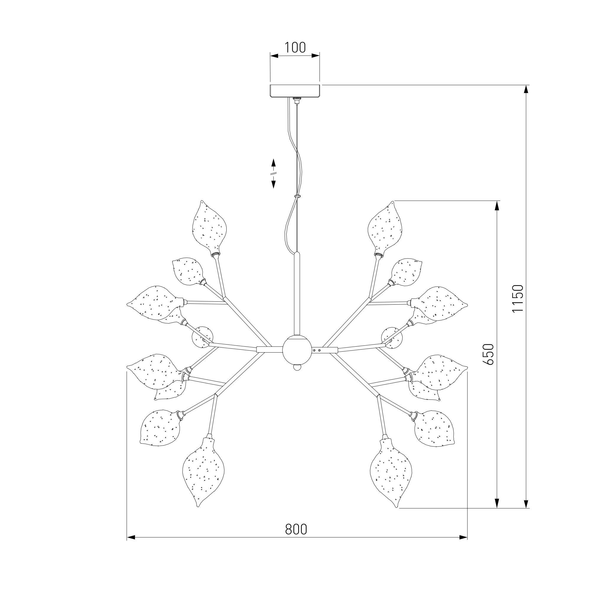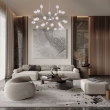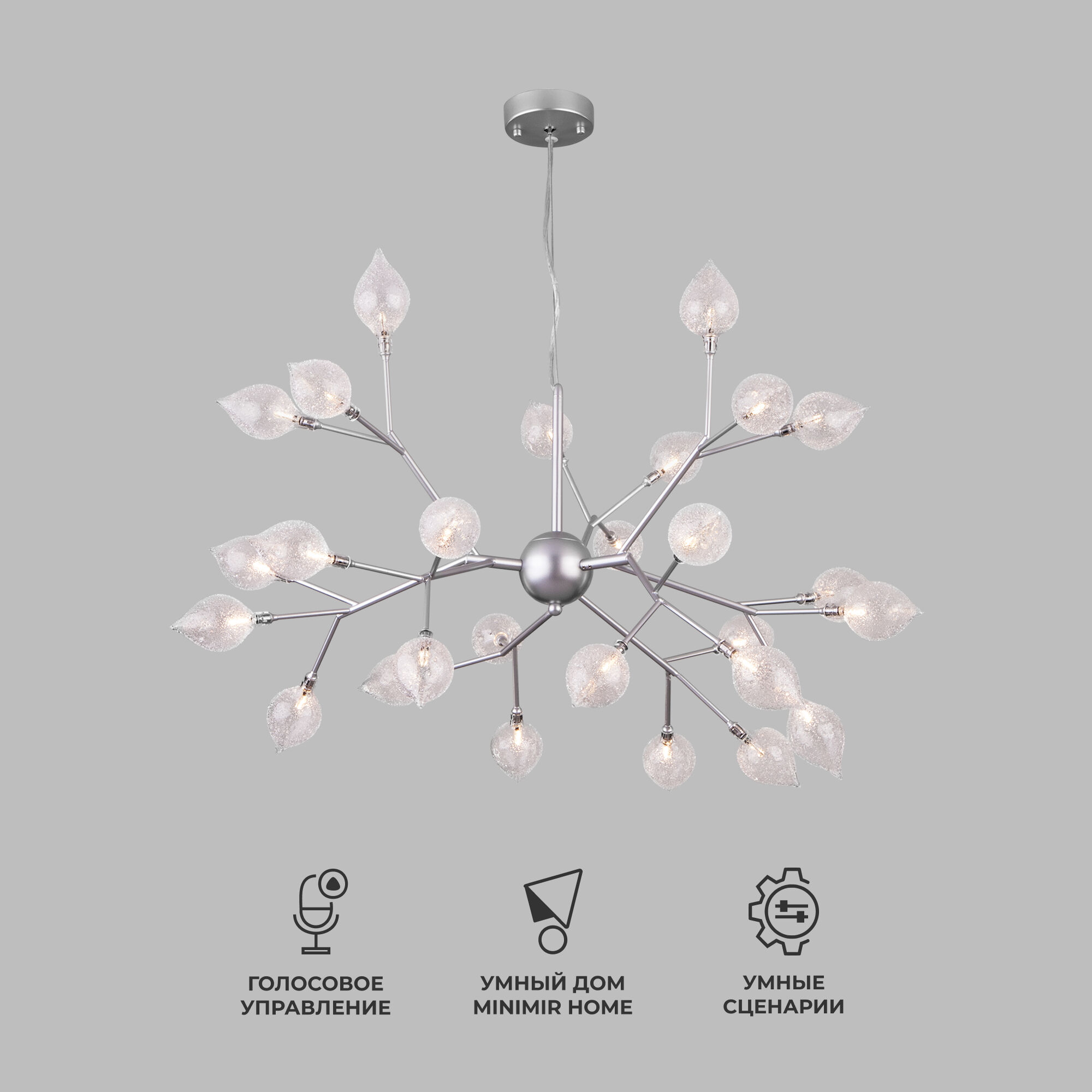 Подходит для различных типов помещений: гостиная, загородный дом и рассчитана на площадь освещения 20 м². Дизайнерская люстра имеет 27 рожков и оснащена патронами с цоколем G4, которые рассчитаны на максимальную мощность ламп 3 Вт. Люстра украшена эффектными стеклянными плафонами в форме лепестков. Арматура изготовлена из высококачественного металла с надежным защитным покрытием.
