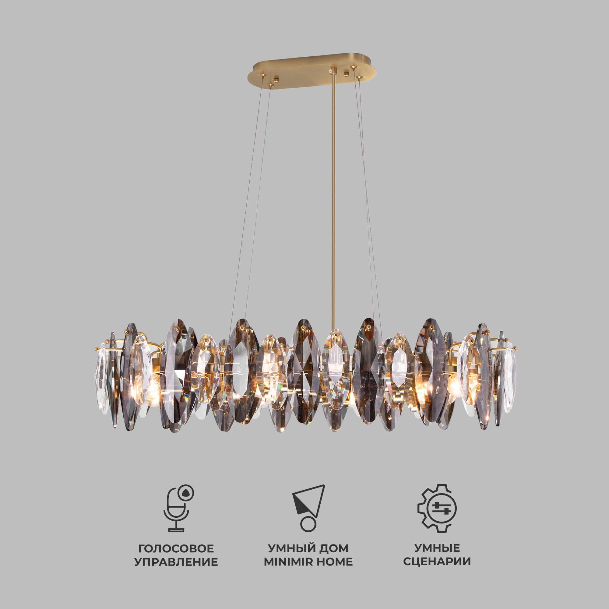 Декоративные хрустальные элементы, украшенные сменными лампами с цоколем E14 типа свеча переливаются на свету искристыми завораживающими бликами. В производстве подвесной люстры использовали хрусталь и высококачественный металл с надежным защитным покрытием.