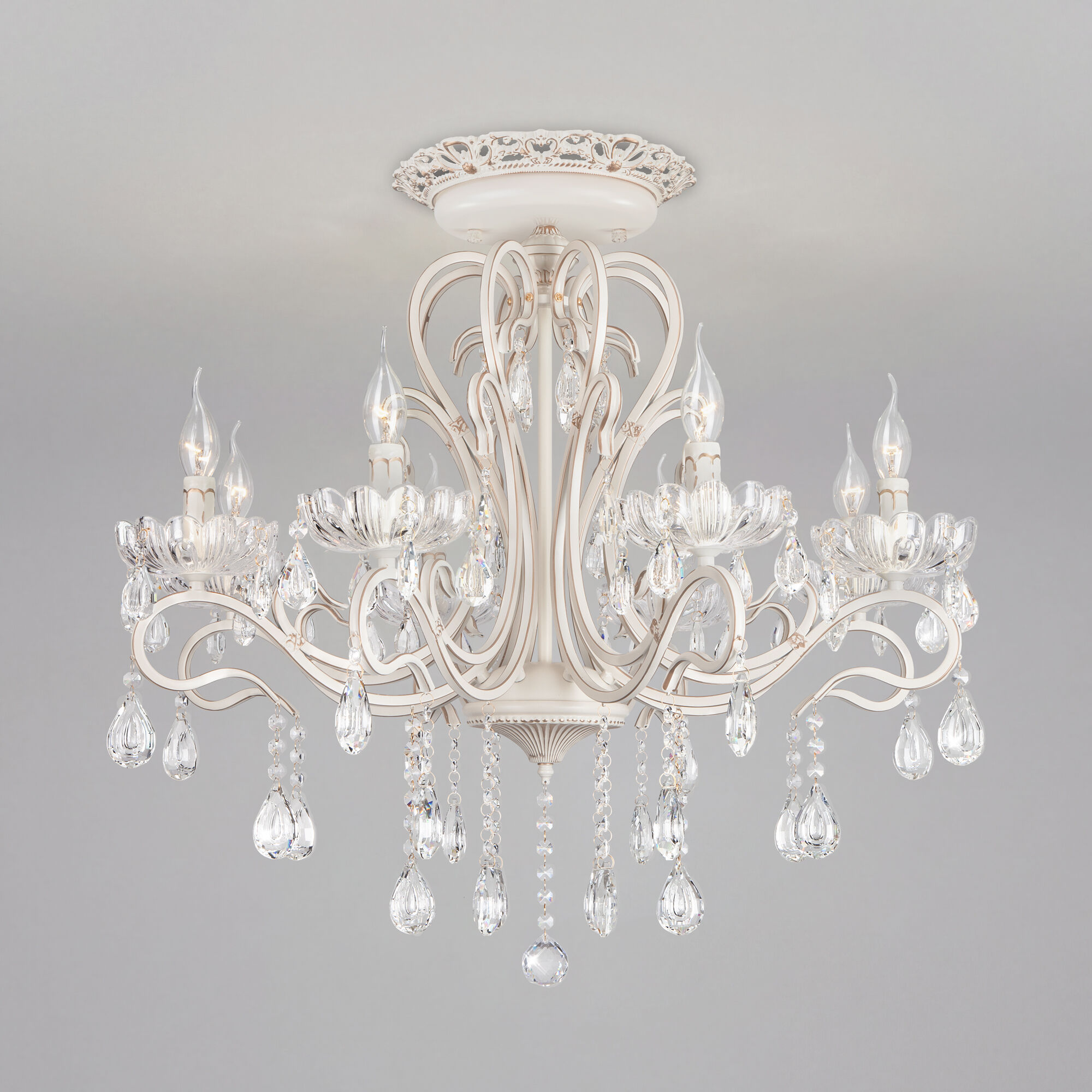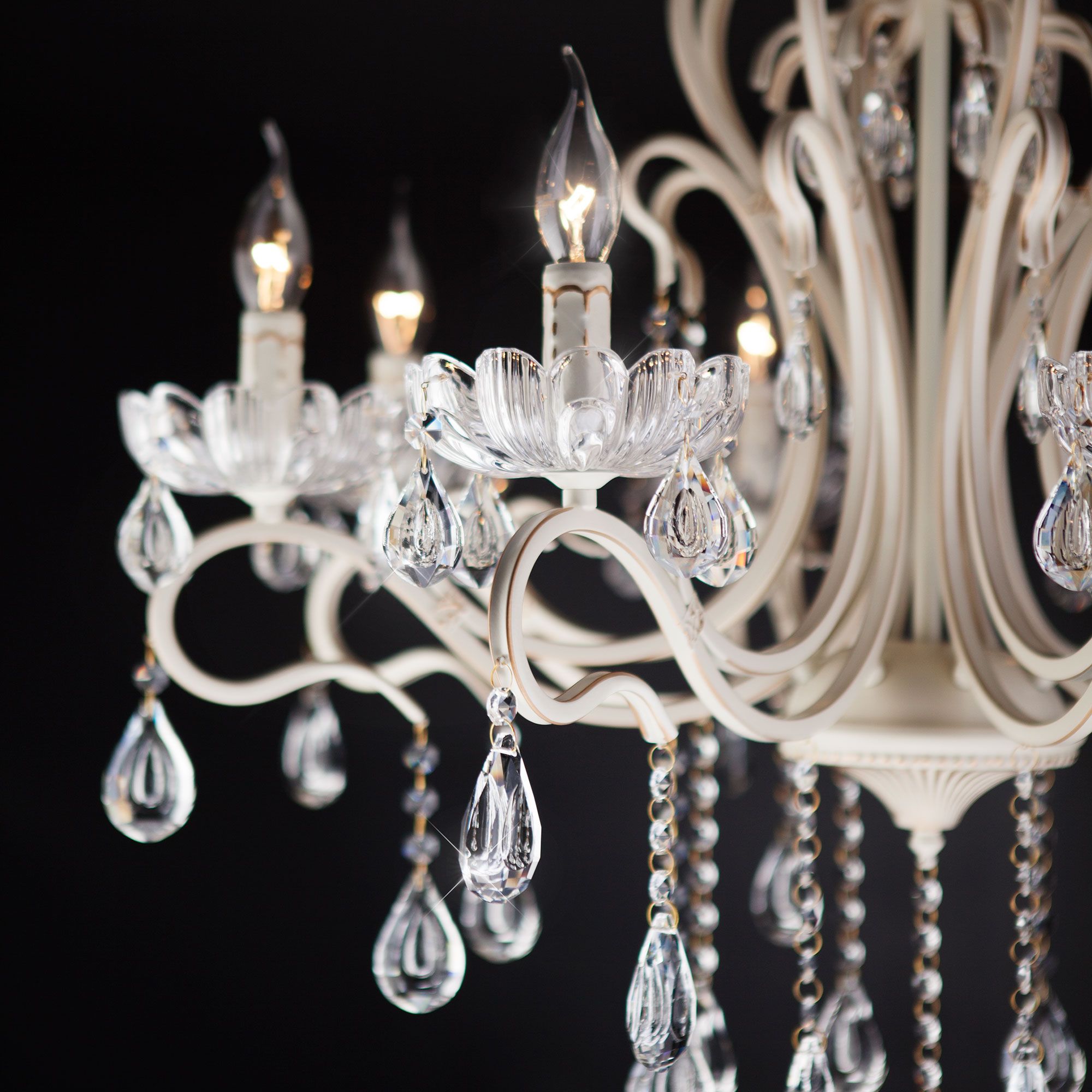 Декоративные рожки в виде подсвечников, украшенные сменными лампами с цоколем E14 типа свеча на ветру переливаются на свету яркими завораживающими бликами. В производстве потолочной люстры использовали особое стекло с эффектной огранкой и высококачественный металл с надежным защитным покрытием.