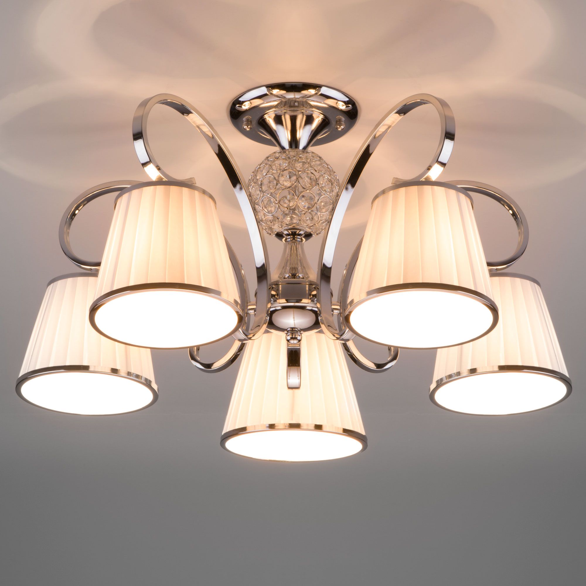 Потолочная люстра с абажурами 60088/5 хром предназначена для создания основного освещения в современных и классических интерьерах, подходит для различных типов помещений: гостиная, спальня и рассчитана на площадь освещения 14м².