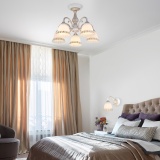 Классическая люстра со стеклянными плафонами 60107/5 белый с золотом из коллекции Campina предназначена для создания основного освещения в современных и классических интерьерах. Изящные линии и детали в стиле ретро придают люстре неповторимый шарм и элегантность. Плафоны из матового стекла с золотистым орнаментом обеспечивают равномерное и приятное освещение. Люстра осветит помещение площадью 13 м².