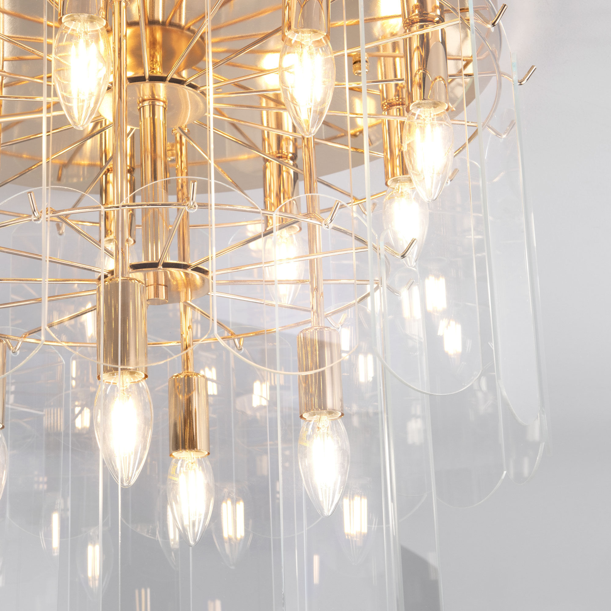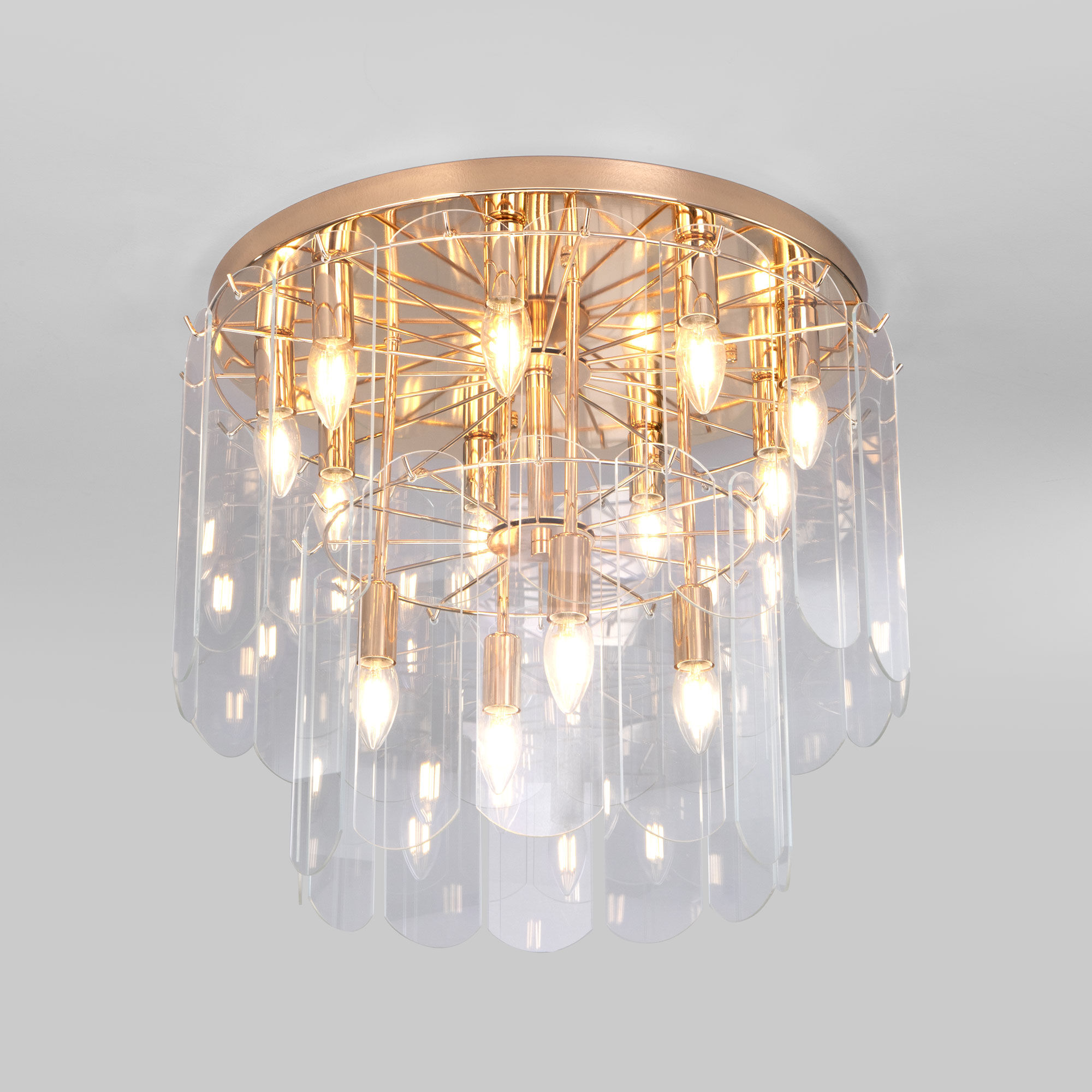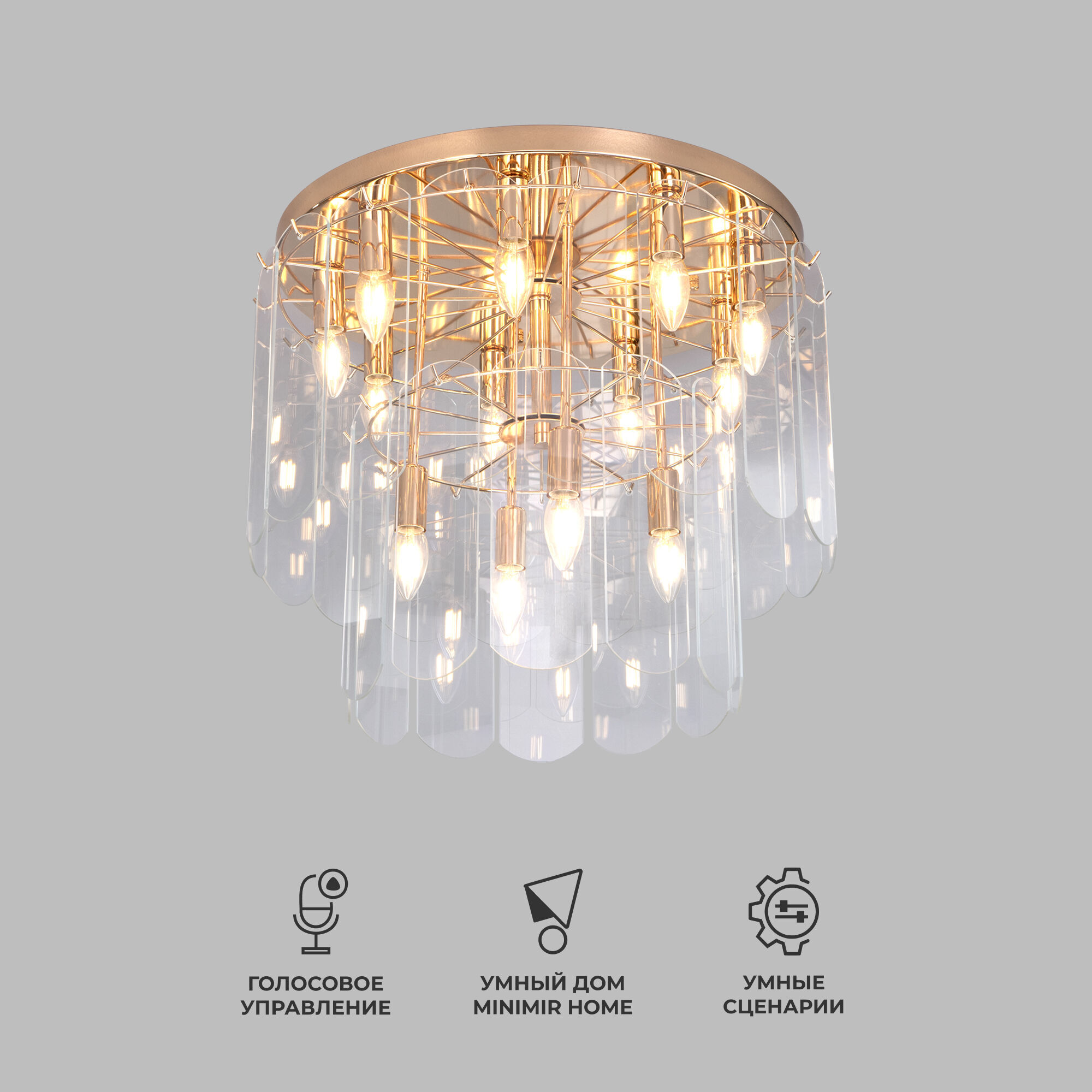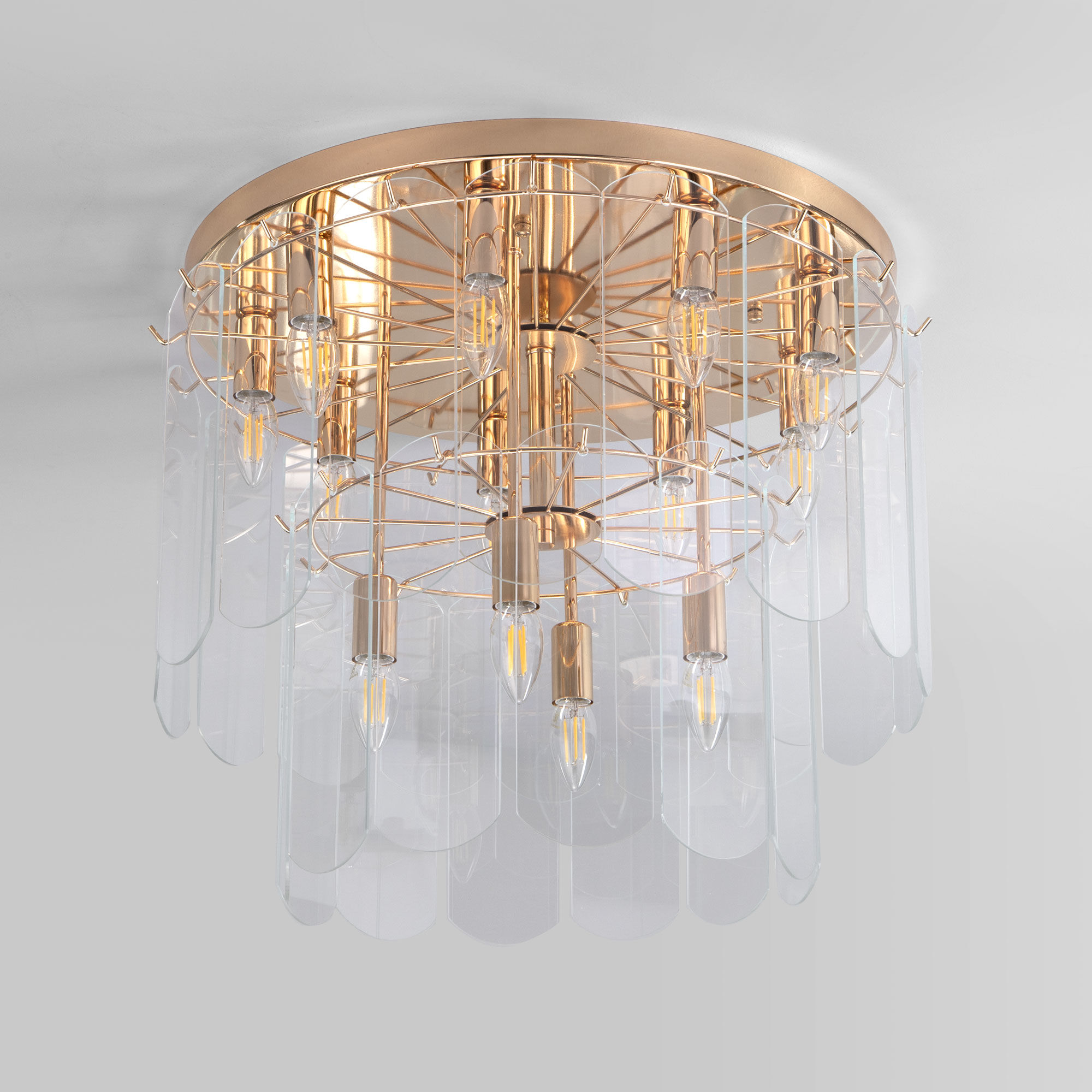 В люстре используются сменные лампы с цоколем Е14, рассчитанные на максимальную мощность 40 Вт. Потолочный светильник оснащен стеклянными плафонами. В производстве светильника использован высококачественный металл с надежным защитным покрытием и закаленное стекло.