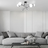 В люстре используются сменные лампы с цоколем E27, рассчитанные на максимальную мощность 60 Вт. Потолочный светильник оснащен стеклянными плафонами. В производстве светильника использован высококачественный металл с надежным защитным покрытием.