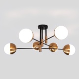 В люстре используются сменные лампы с цоколем E27, рассчитанные на максимальную мощность 60 Вт. Потолочный светильник оснащен стеклянными плафонами. В производстве светильника использован высококачественный металл с надежным защитным покрытием.
