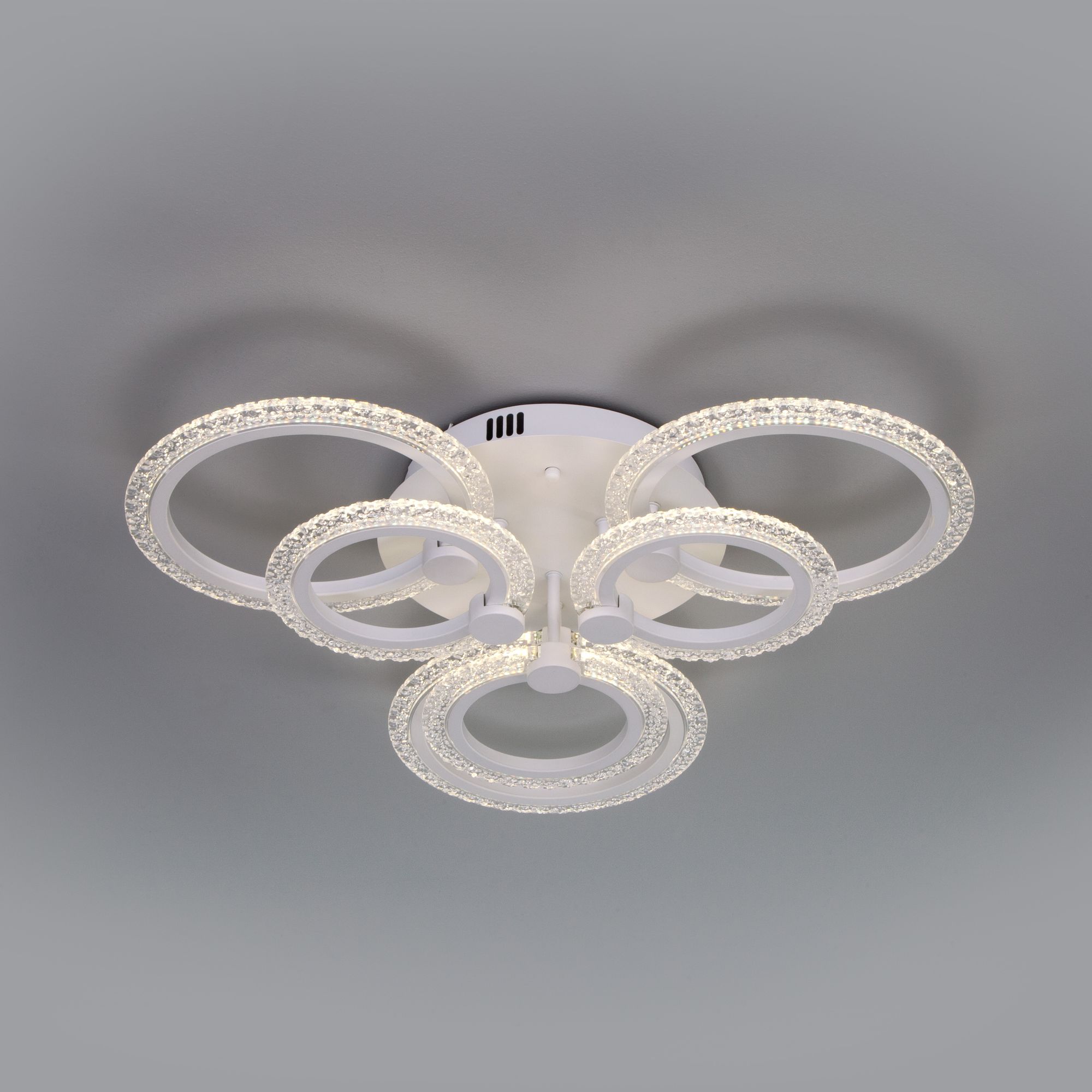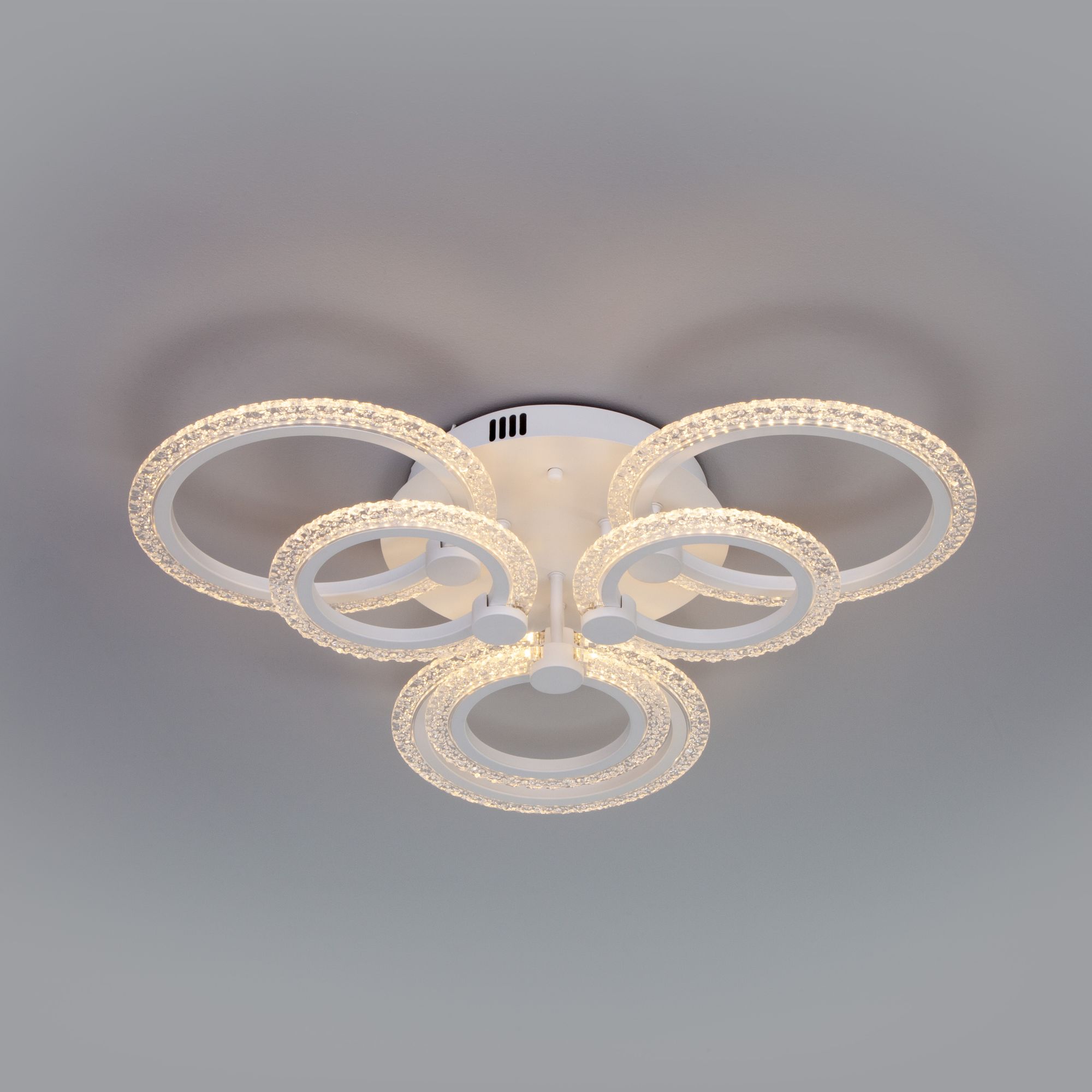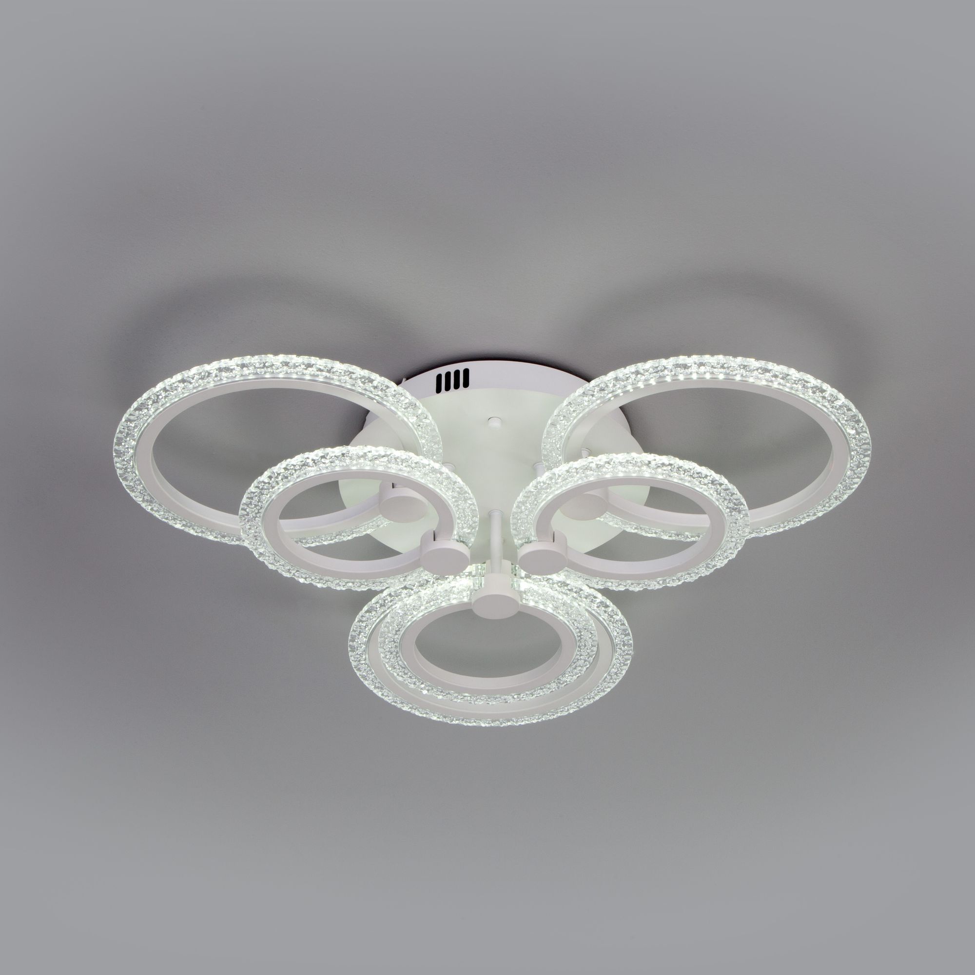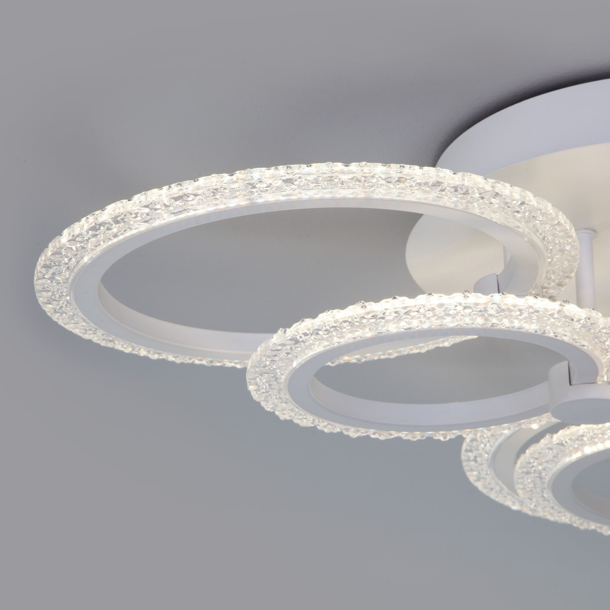 С помощью пульта управления можно регулировать цветовую температуру, доступную в трех значениях: 3300, 4200 и 6500 К. При изготовлении потолочного светильника были использованы высококачественные материалы: акрил и металл. Накладная потолочная светодиодная люстра подходит для установки на любые поверхности, в том числе подходит для натяжных и подвесных потолков.