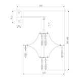 - Коллекция включает в себя настенный светильник и подвесную люстру.