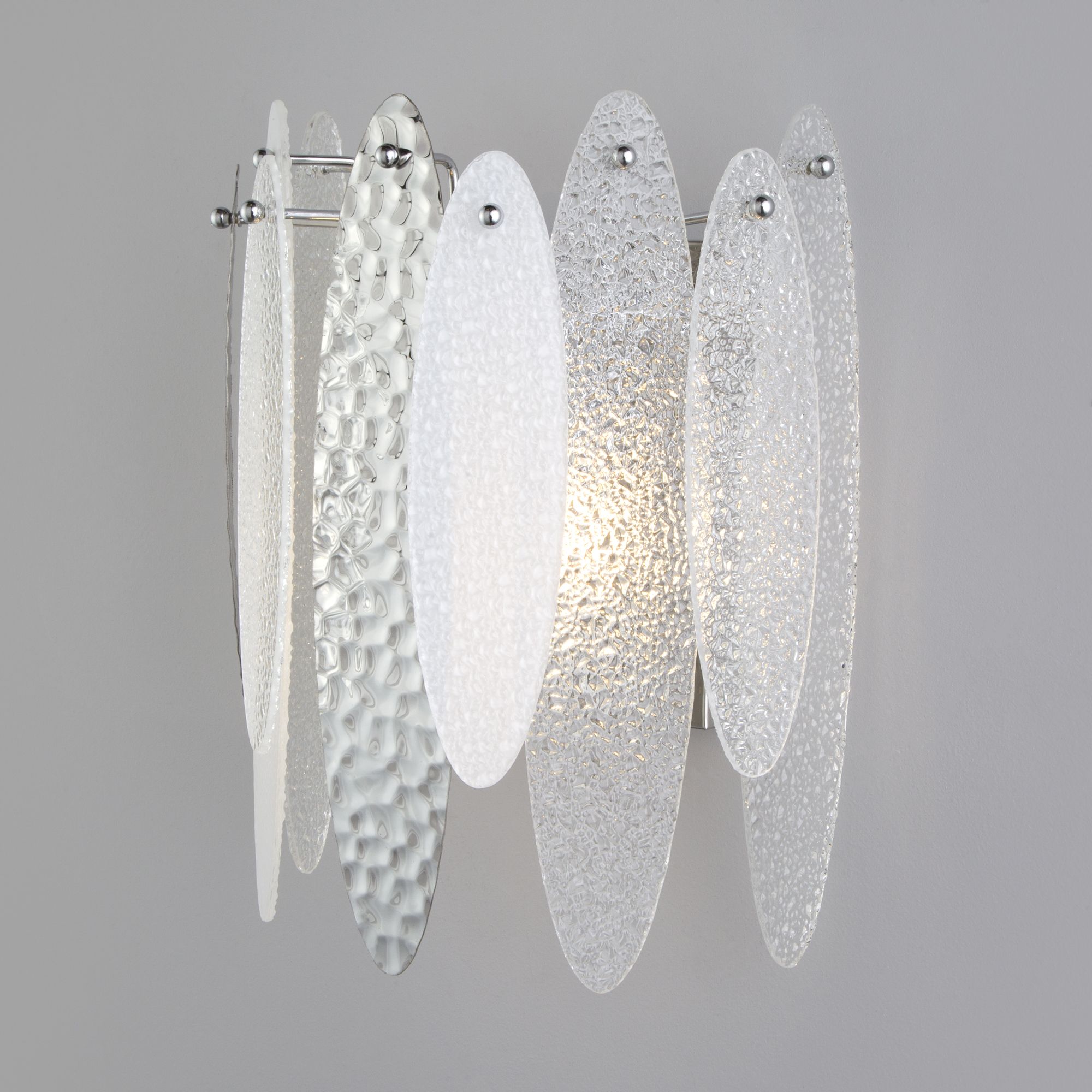 Настенный светильник с фактурным стеклом 324/1 создаст качественное дополнительное освещение и станет ярким дополнением к основному источнику света. Благодаря стеклянному декору, бра создает мягкое рассеянное свечение, подходящее для комфортного чтения книг в вечернее время. В качестве источника света используются сменные лампы типа "Свеча" или "Шар" с цоколем E14. Патрон рассчитан на максимальную мощность ламп накаливания 60 Вт.