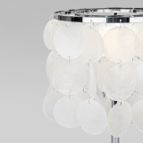Благодаря перламутровым подвескам настольная лампа создает мягкое рассеянное свечение, подходящее для комфортного чтения книг в вечернее время. Прочный металлический корпус светильника устойчив к механическим воздействиям, а защитное покрытие обеспечивает надежную электроизоляцию и презентабельный внешний вид.