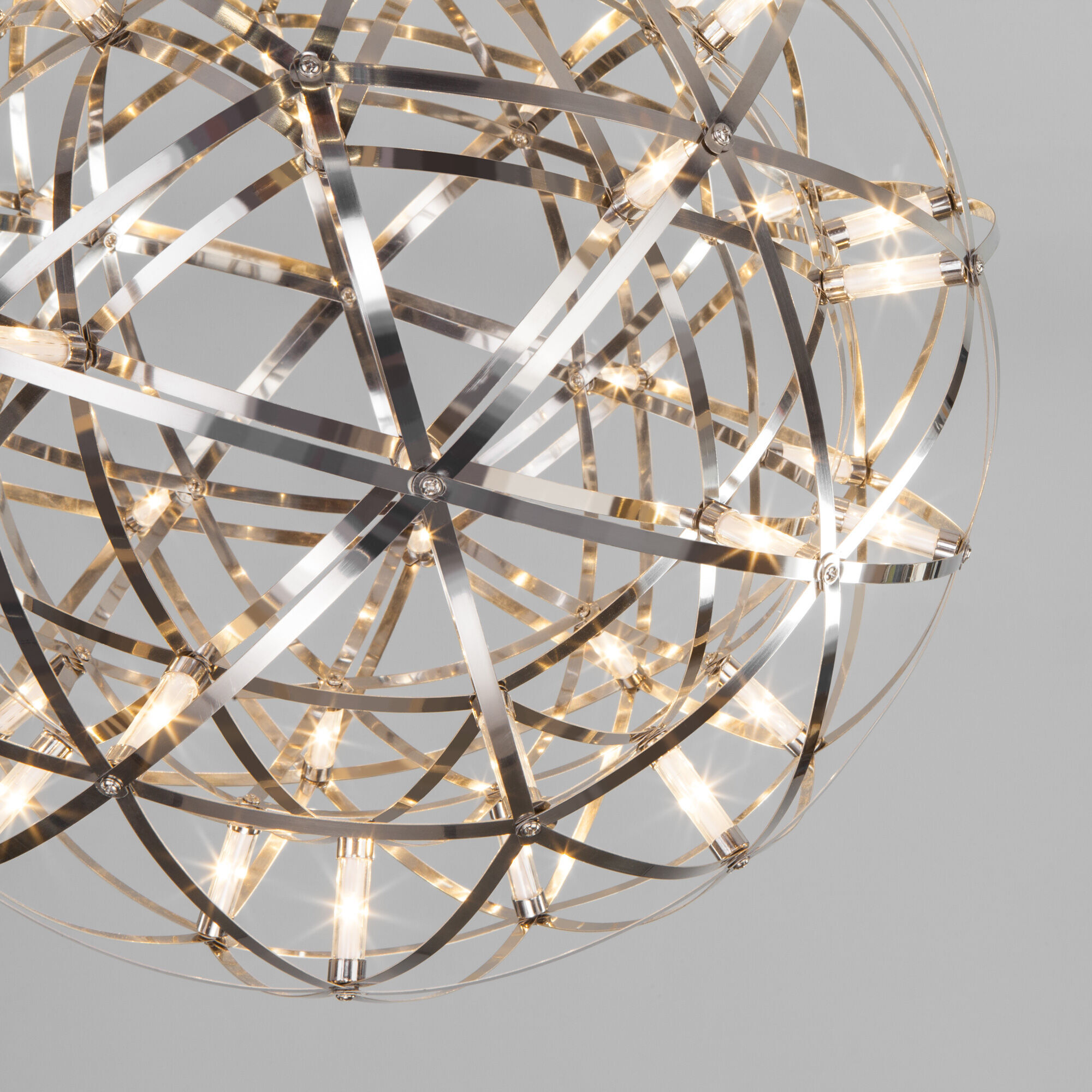Светильник с металлическим шарообразным плафоном оснащен системой регулировки высоты подвеса, позволяющей размещать изделие на разных уровнях, уменьшая или увеличивая угол рассеивания светового потока. Данный светильник легко устанавливается на потолке при помощи монтажной планки.