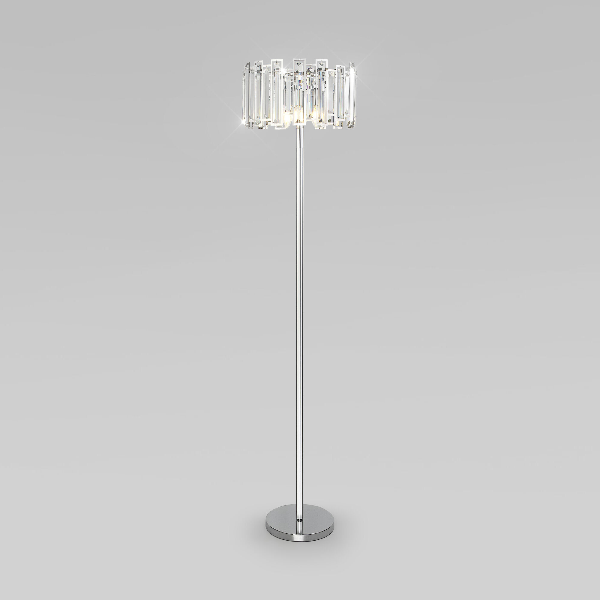 Торшер с хрусталем хром 01149/3 Strotskis - это стильный элемент светового дизайна в современных и классических интерьерах. Выразительный и современный торшер со сменными лампами E14 поможет создать качественное дополнительное освещение на площади 5 м² и станет изящным украшением вашей комнаты.